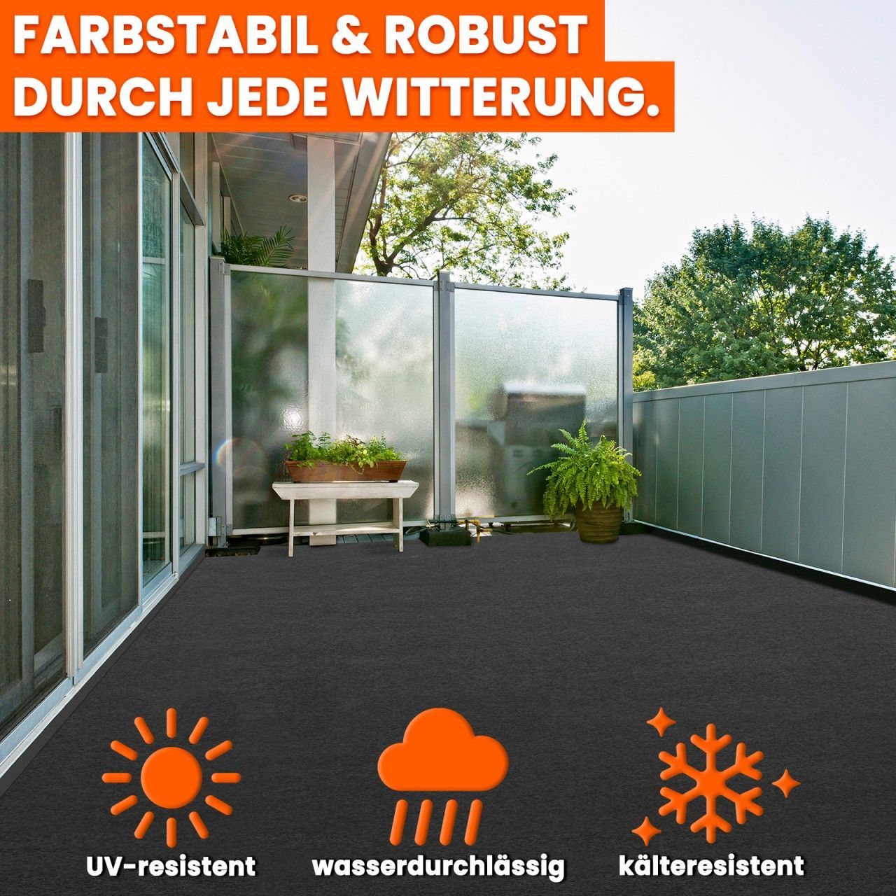 Rasenteppich 133 x 400 cm Schwarz mit Noppen Kunstrasen Teppich Balkon Terrasse Outdo