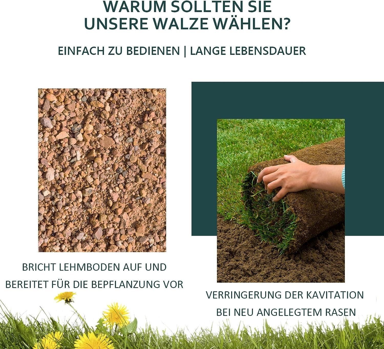 Rasenwalze Handwalze Gartenwalze Schwerlasttrommel, Rasenroller Rasen 63L/114x90x30cm