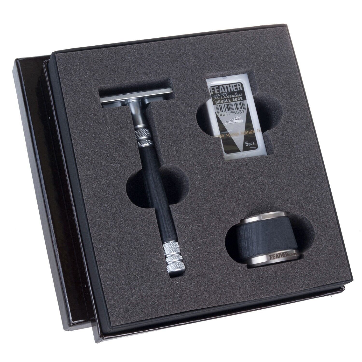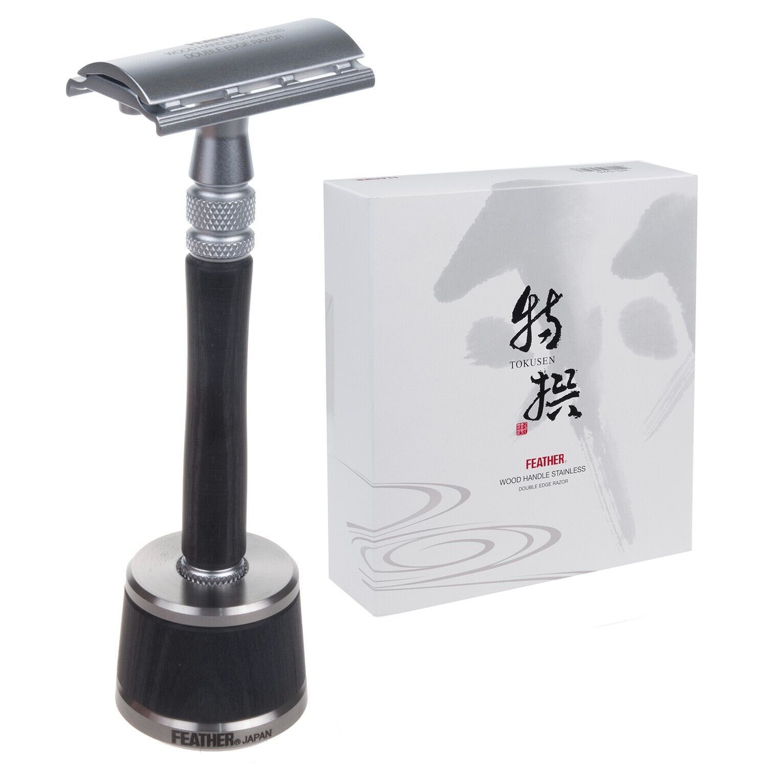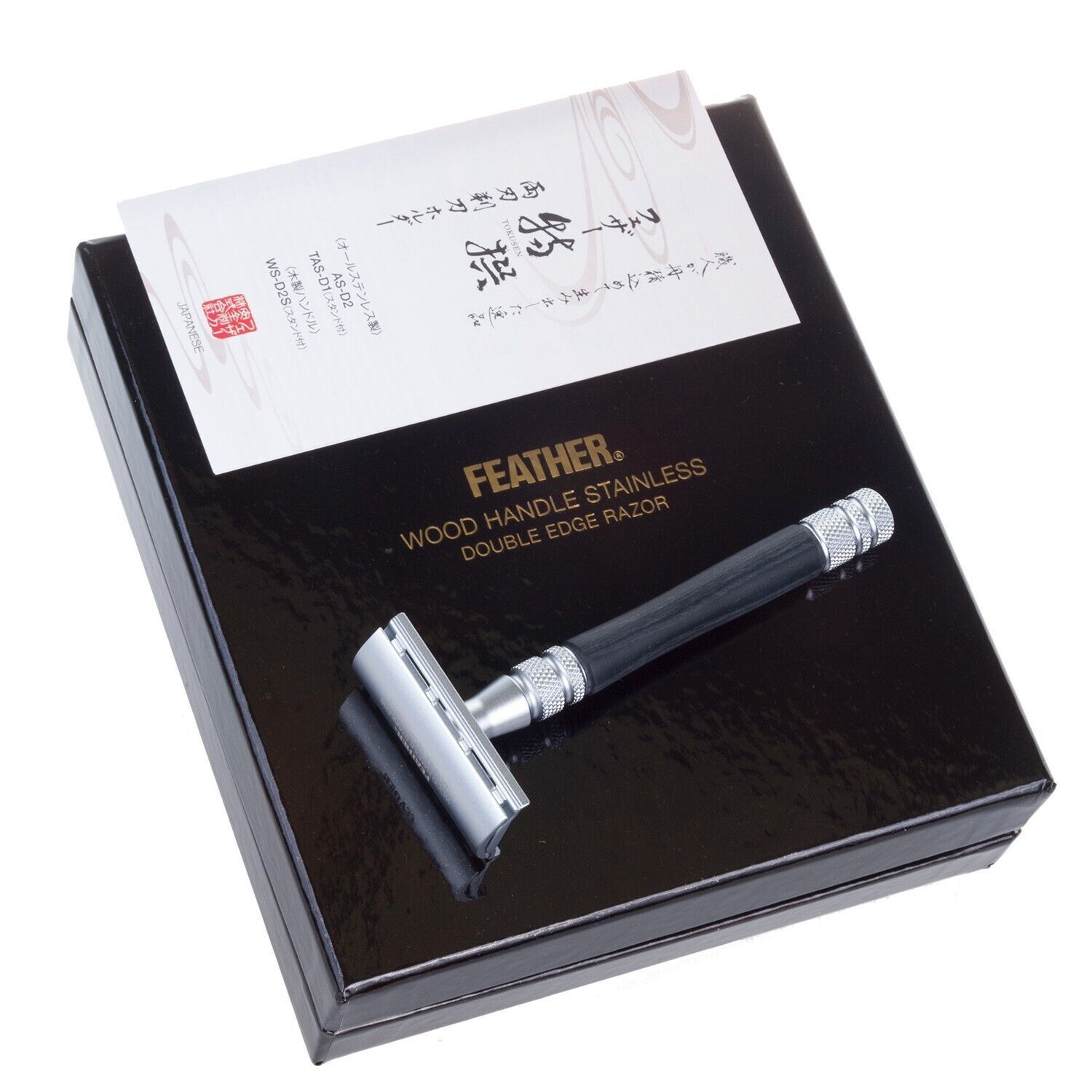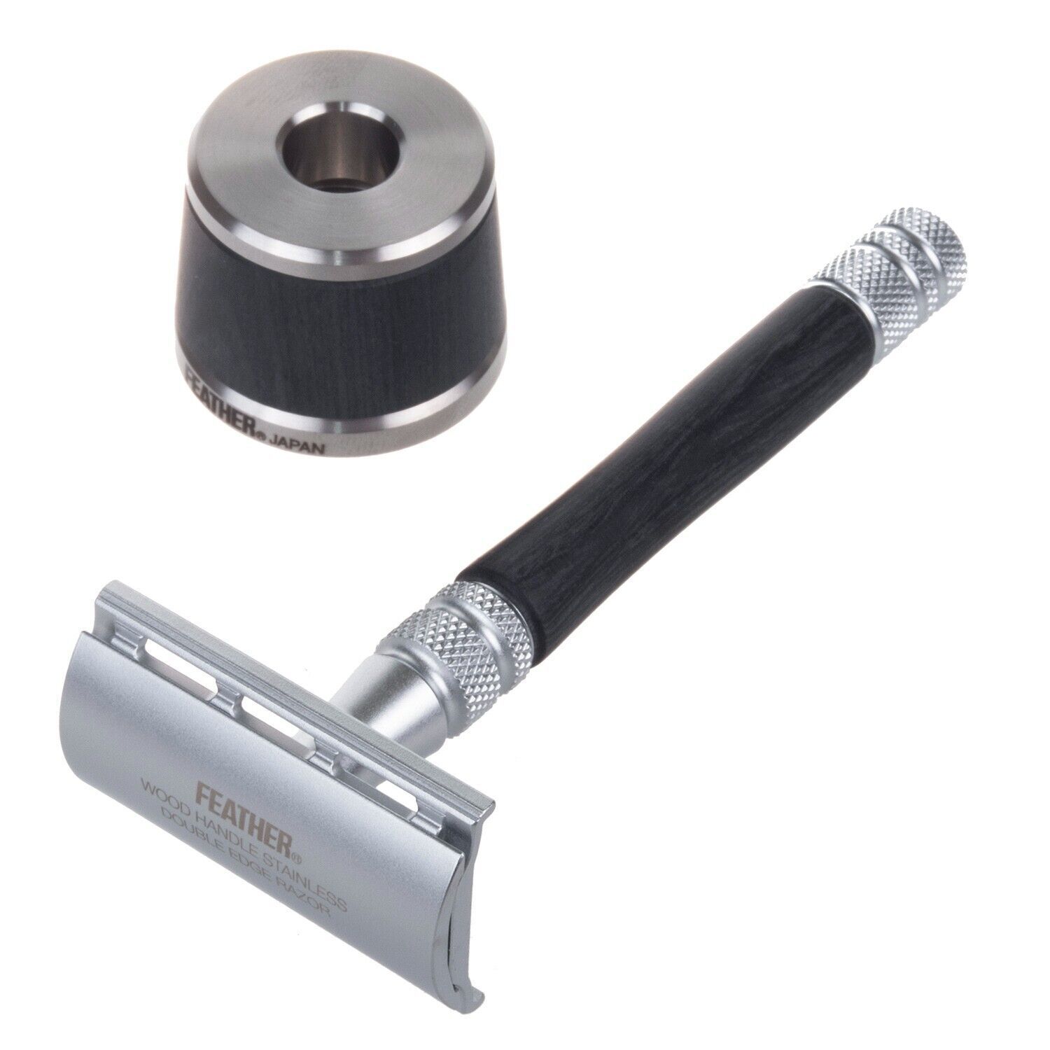 Feather Rasierer Feather WS-D2S Rasierklingen-Rasierer Edelstahl Holzelemente Ständer