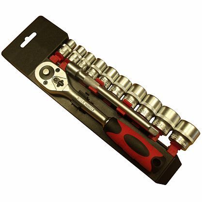 Kraftsparend, präzise und unverwüstlich wird dieses Ratschenset zum unverzichtbaren Werkzeug für Profis und Hobbybastler. Ratschenset mit Verlängerung und 10 Nüssen (10 - 24 mm) mit Kugelverriegelung Chrom-Vanadium-Stahl Rechts- und Linkslauf möglich rutschfester 2 Komponenten Griff mit praktischer