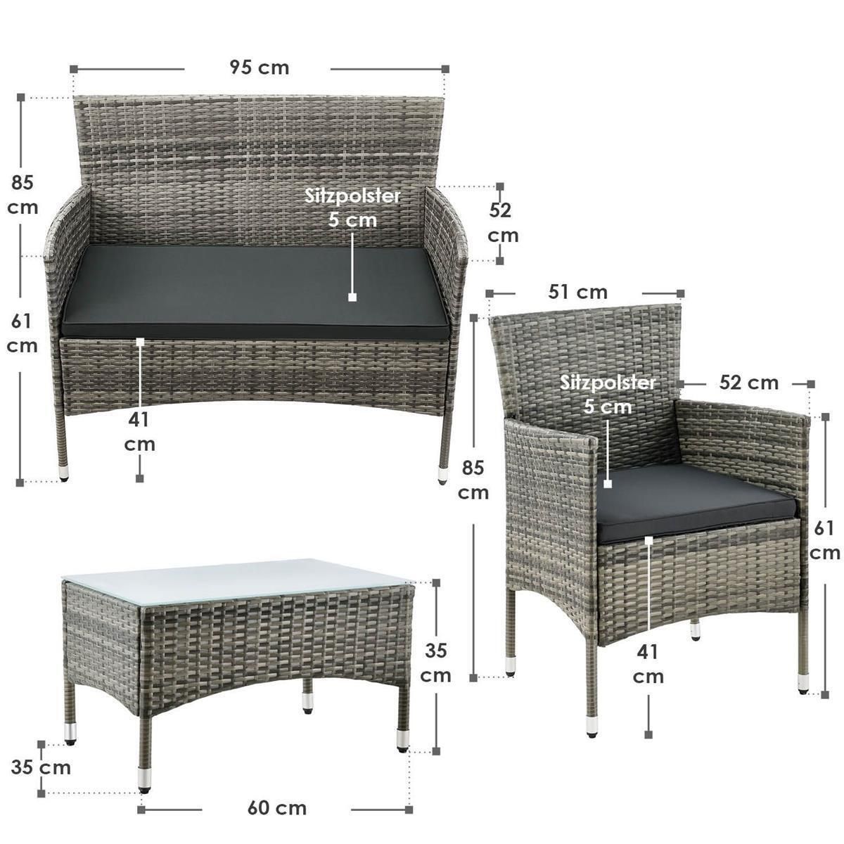 Rattan Gartenmöbel Florenz Rattanset Sitzgarnitur 4 Personen Terrasse Balkon Garten