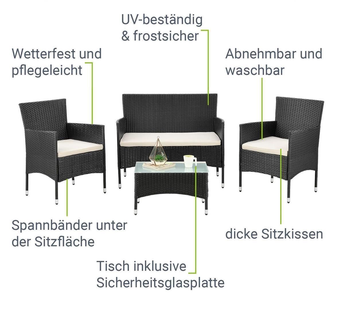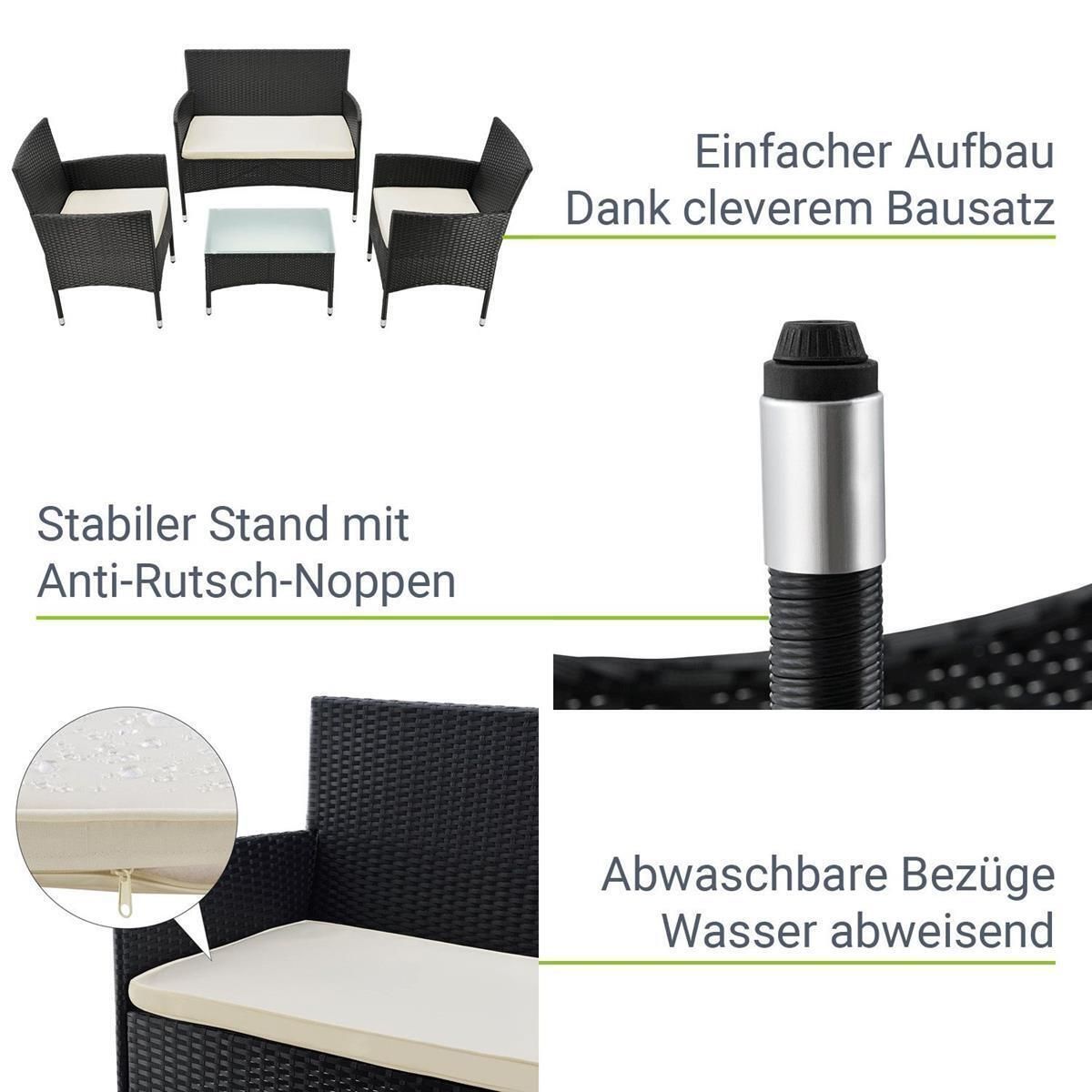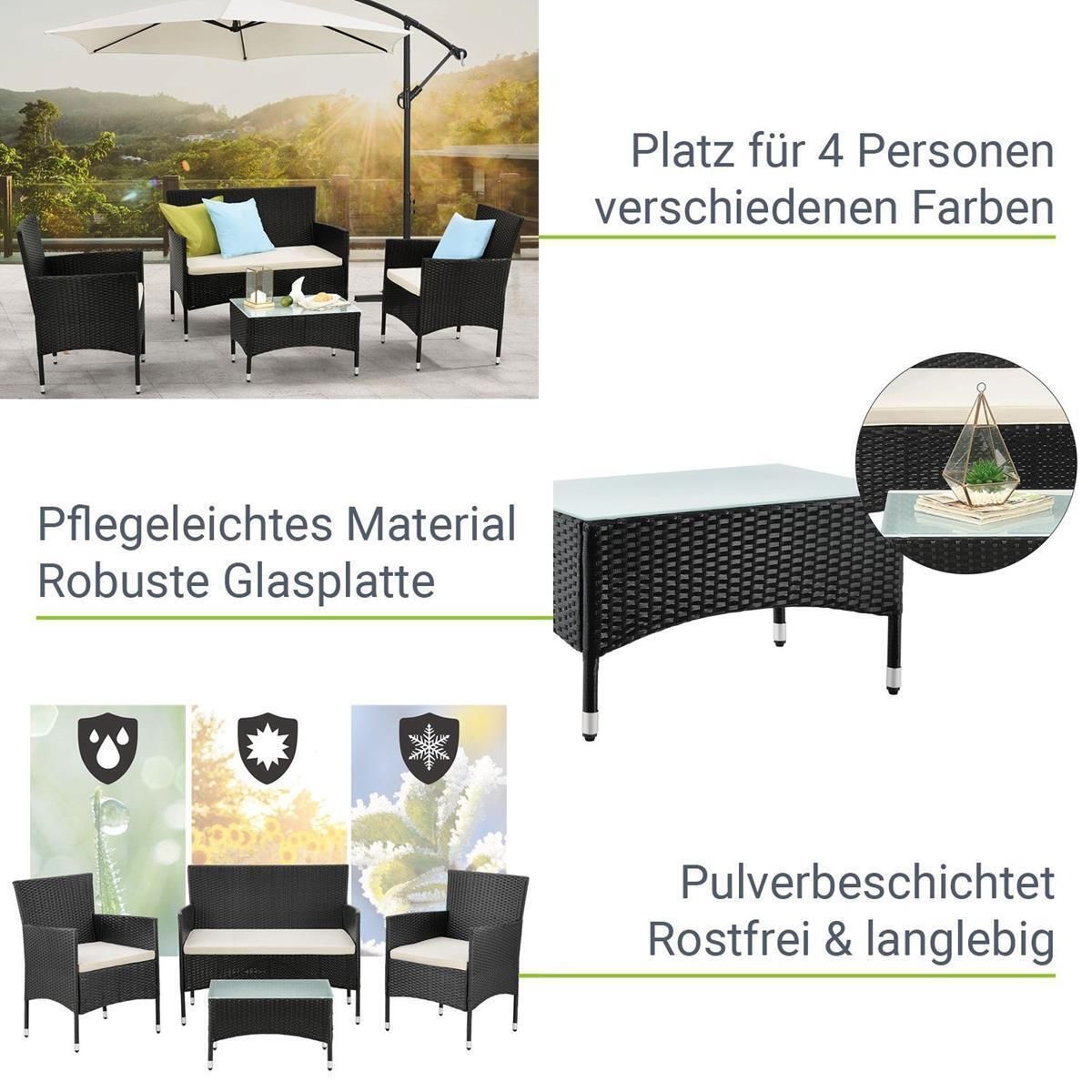 Rattan Gartenmöbel Florenz Rattanset Sitzgruppe Set 4 Personen Terrasse Balkon Garten