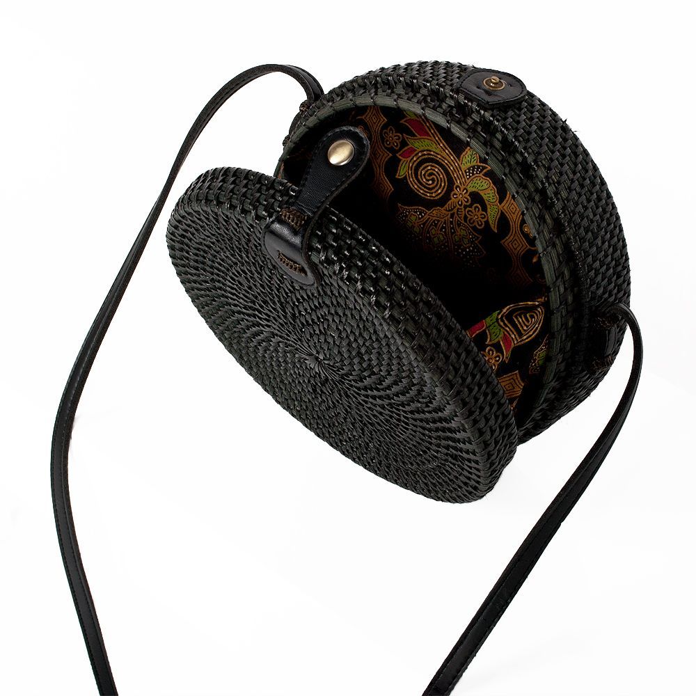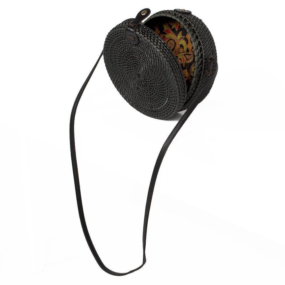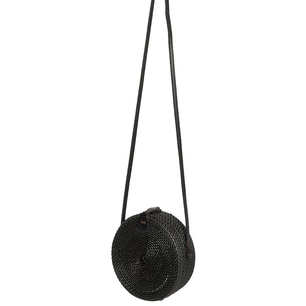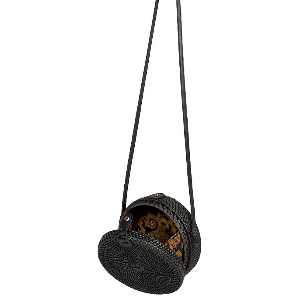 Rattan Handtasche TONDO ca. D20cm Black Bali Umhängetasche handmade