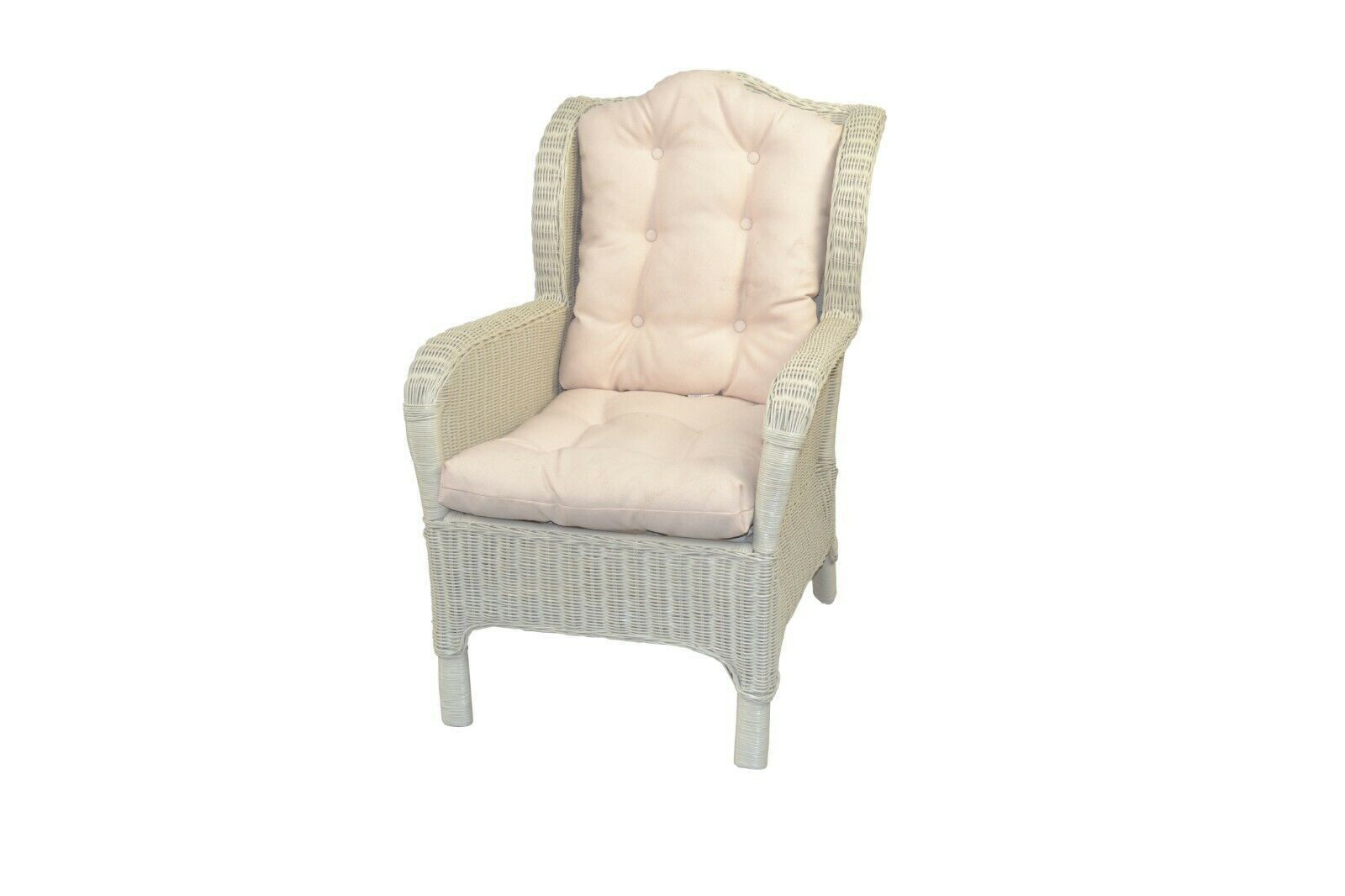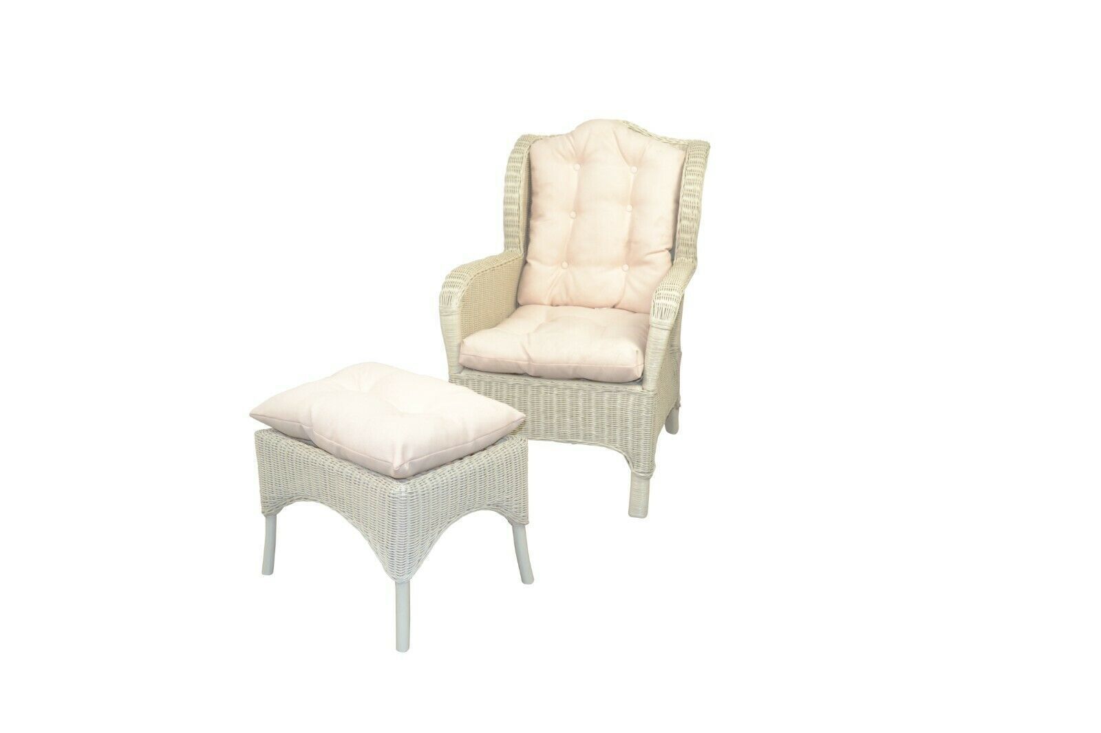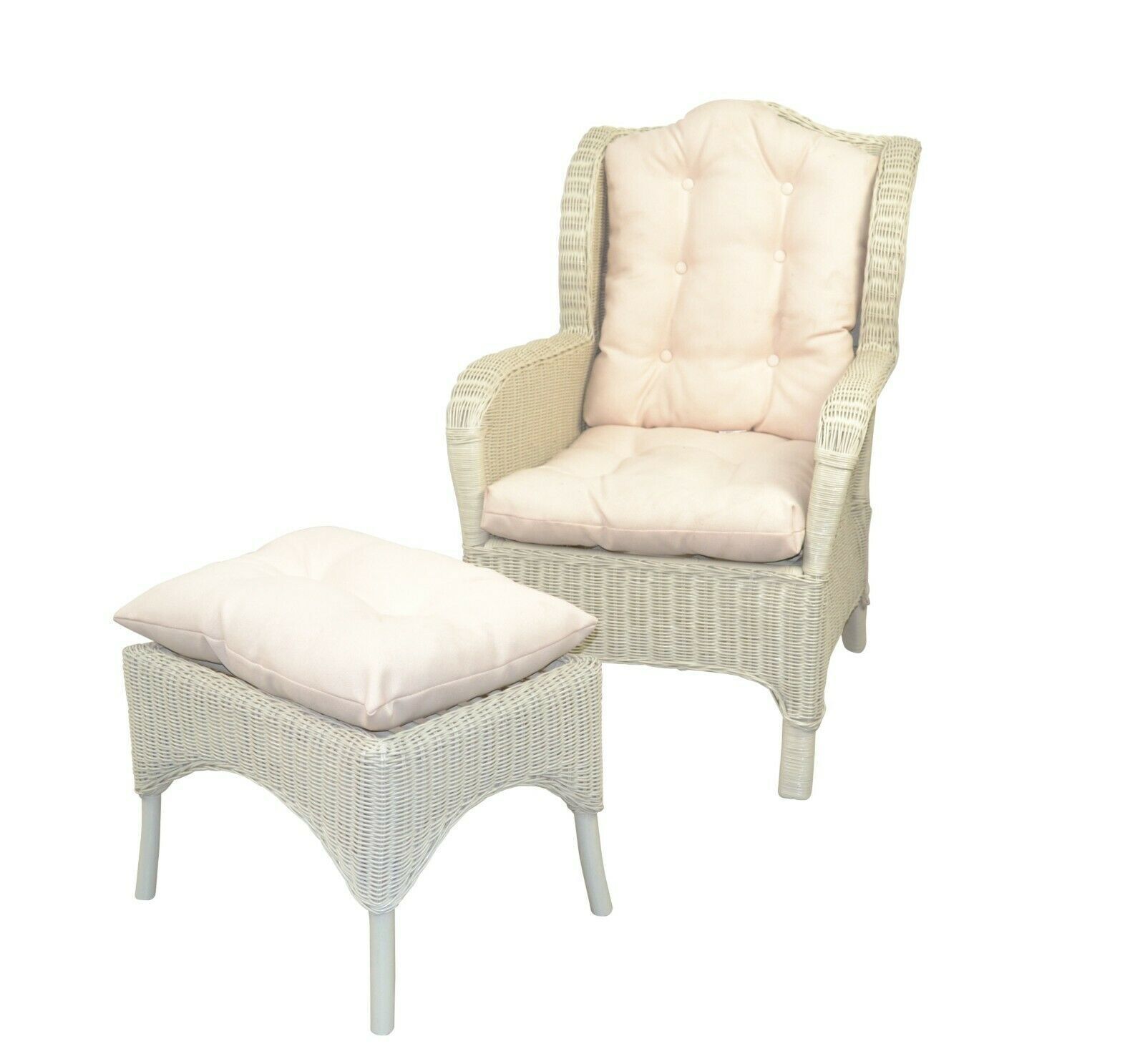 Rattan Ohrensessel weiß inklusive Hocker Kissen Rattansessel Ohrenbackensessel