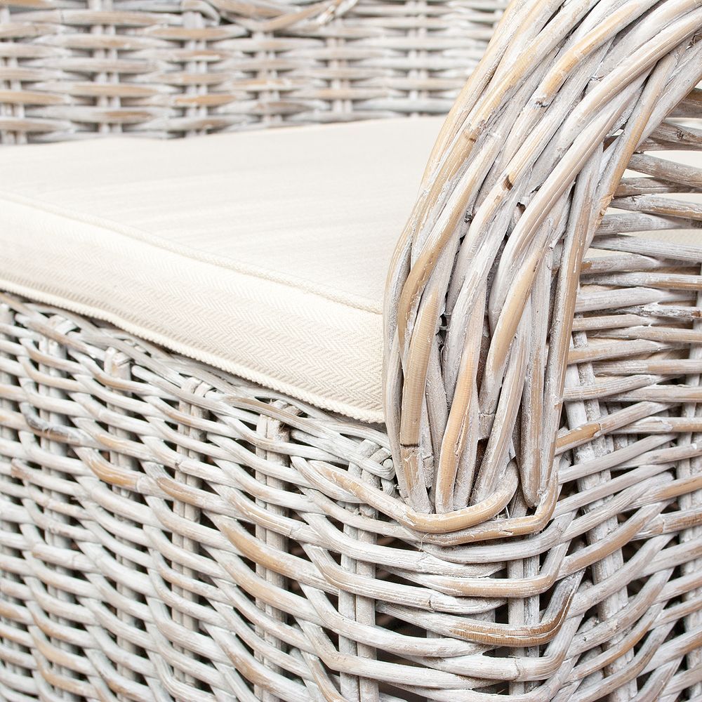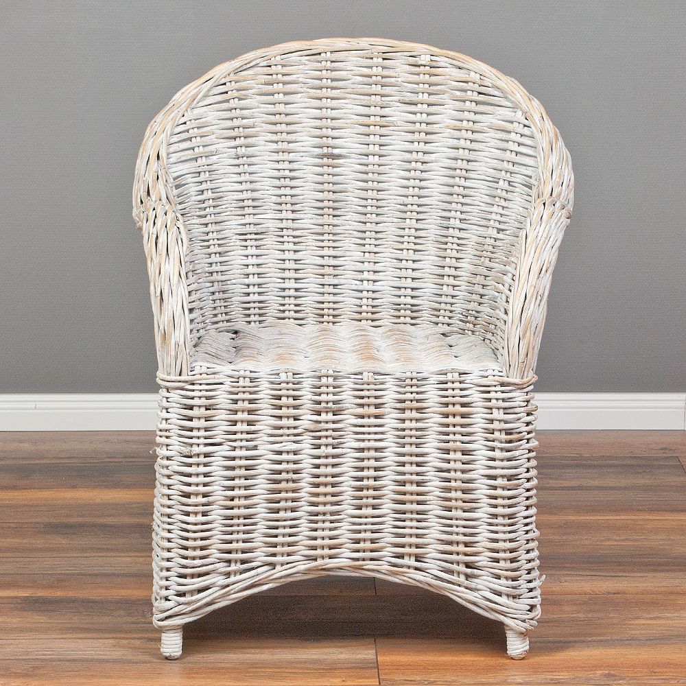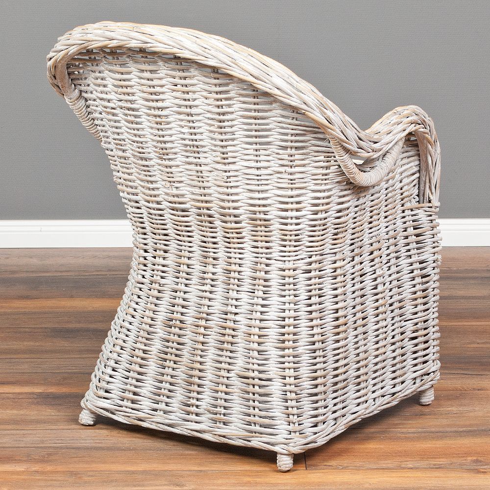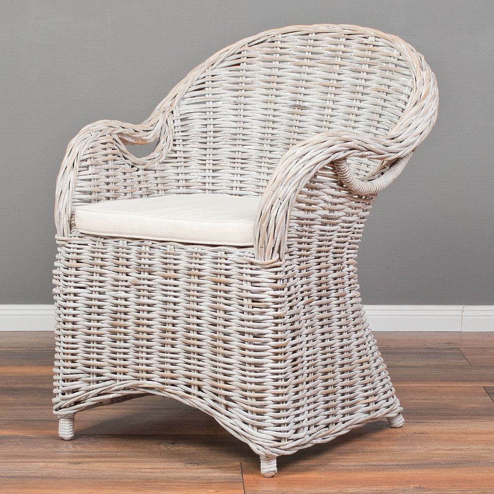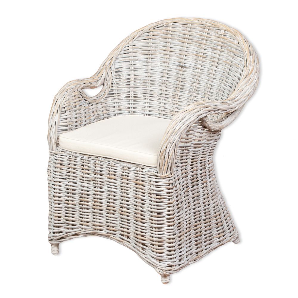 Rattan-Sessel Charlotte White-Washed mit Sitzkissen Stuhl Armlehnstuhl Rattan