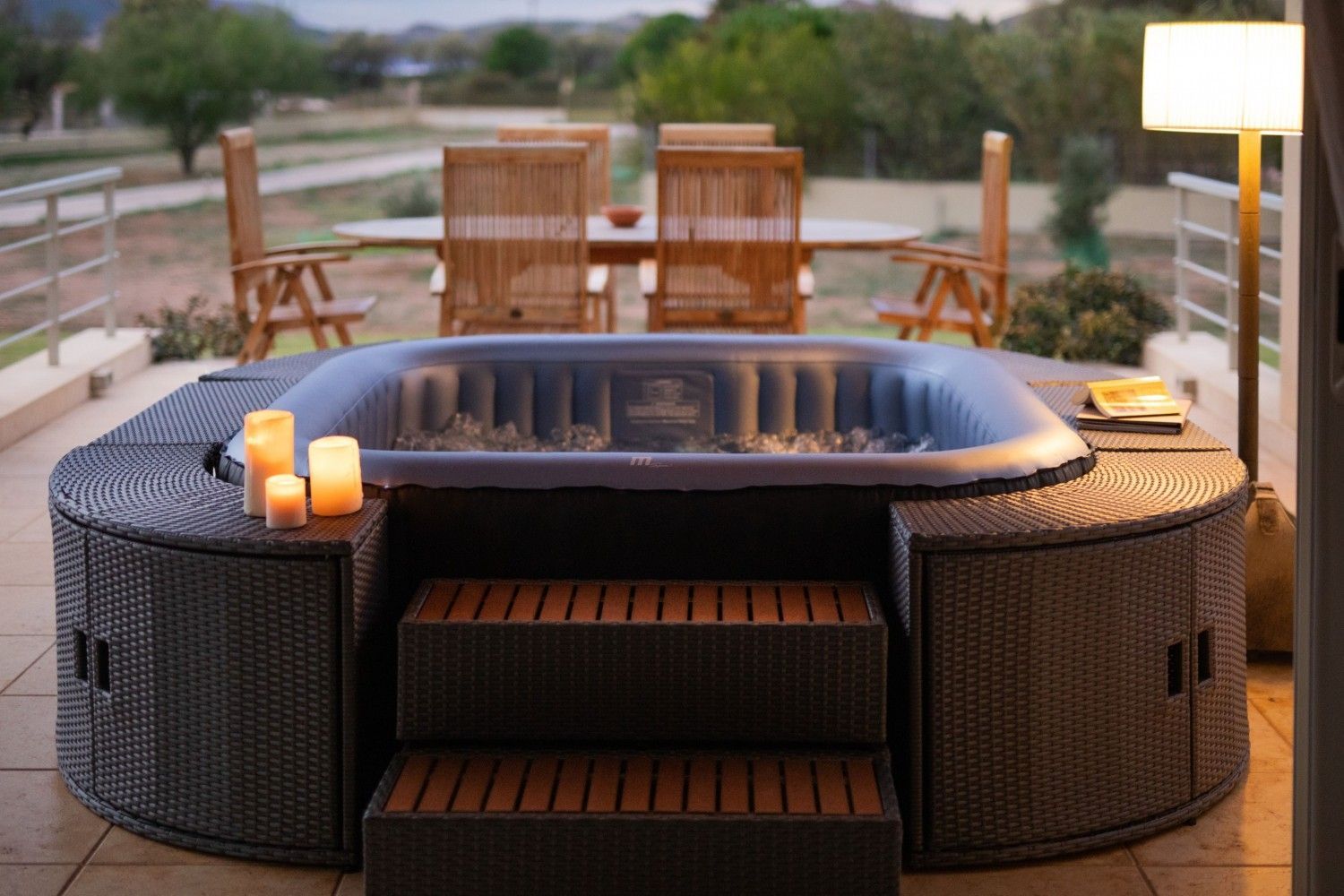 Rattanmöbel Aufblasbarer Whirlpool, Ablage, Bubble Spa gerade - Lagerabverkauf