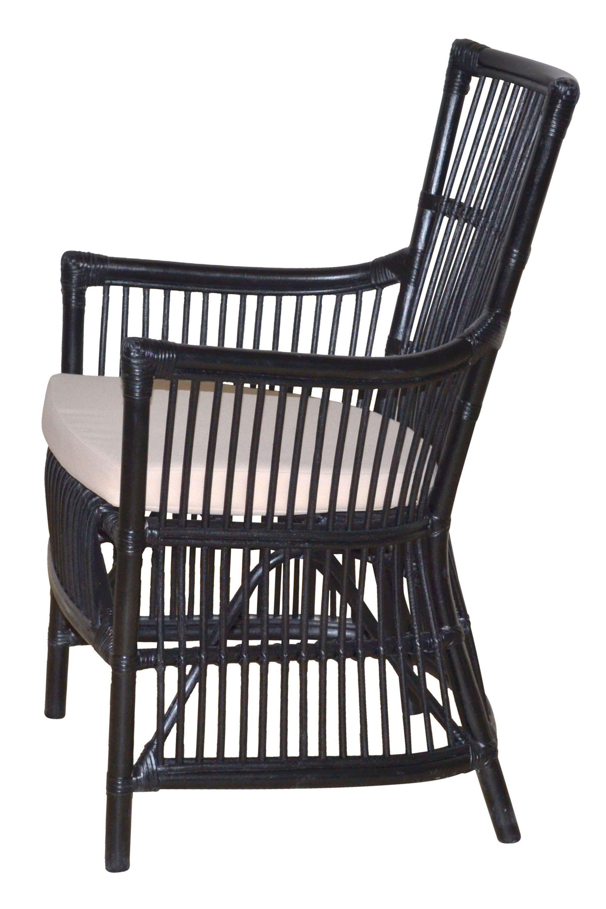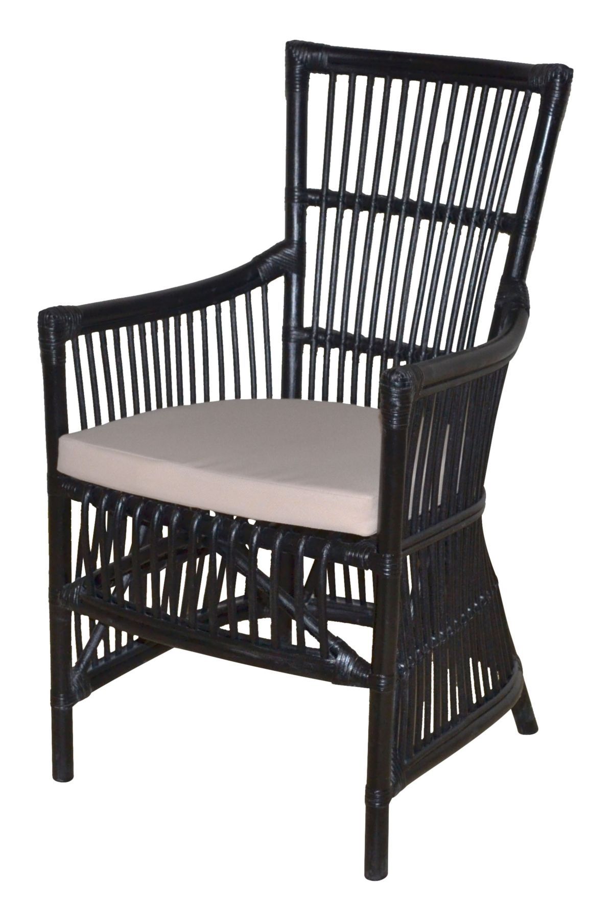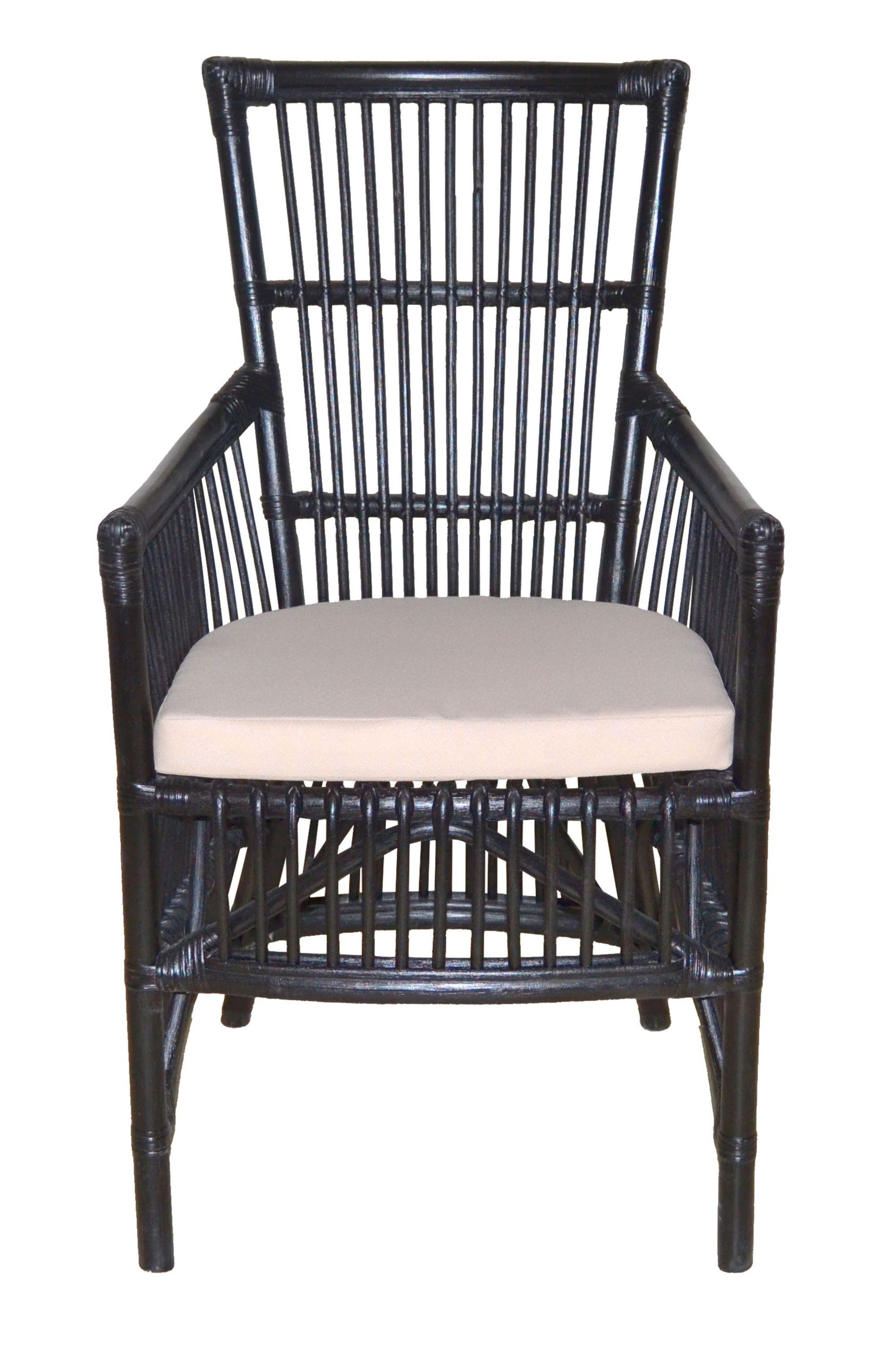 Rattansessel "Clarissa" handgeflochten, mit Armlehnen, schwarz, inkl. Kissen