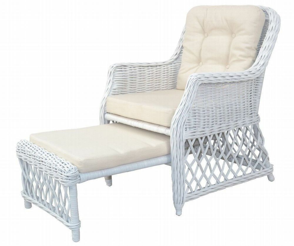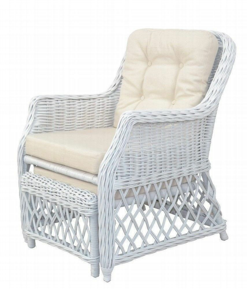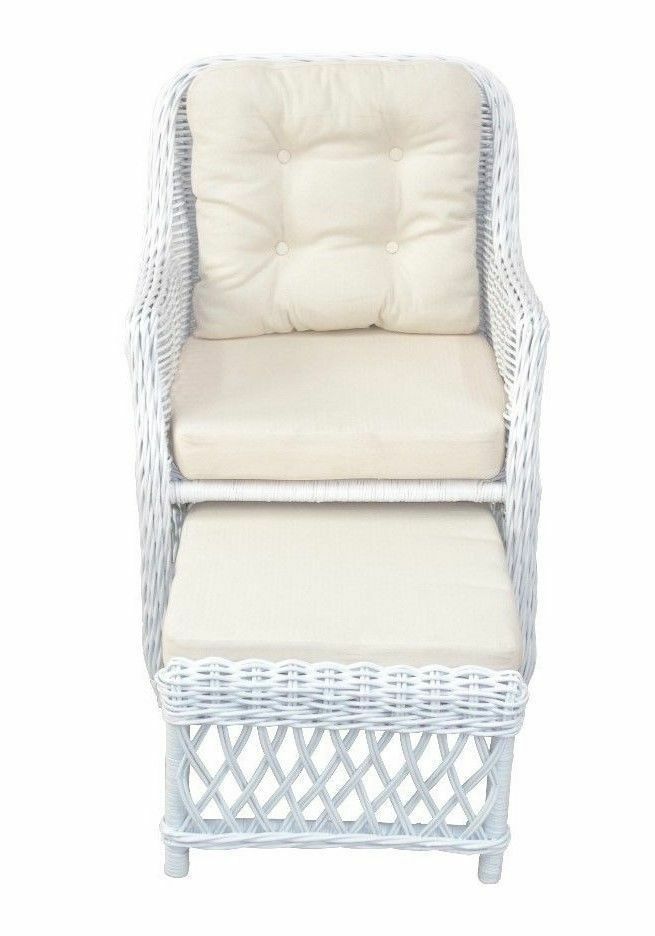 Rattansessel weiß inkl. Kissen Relaxsessel Fernsehsessel Korbsessel Fußstütze