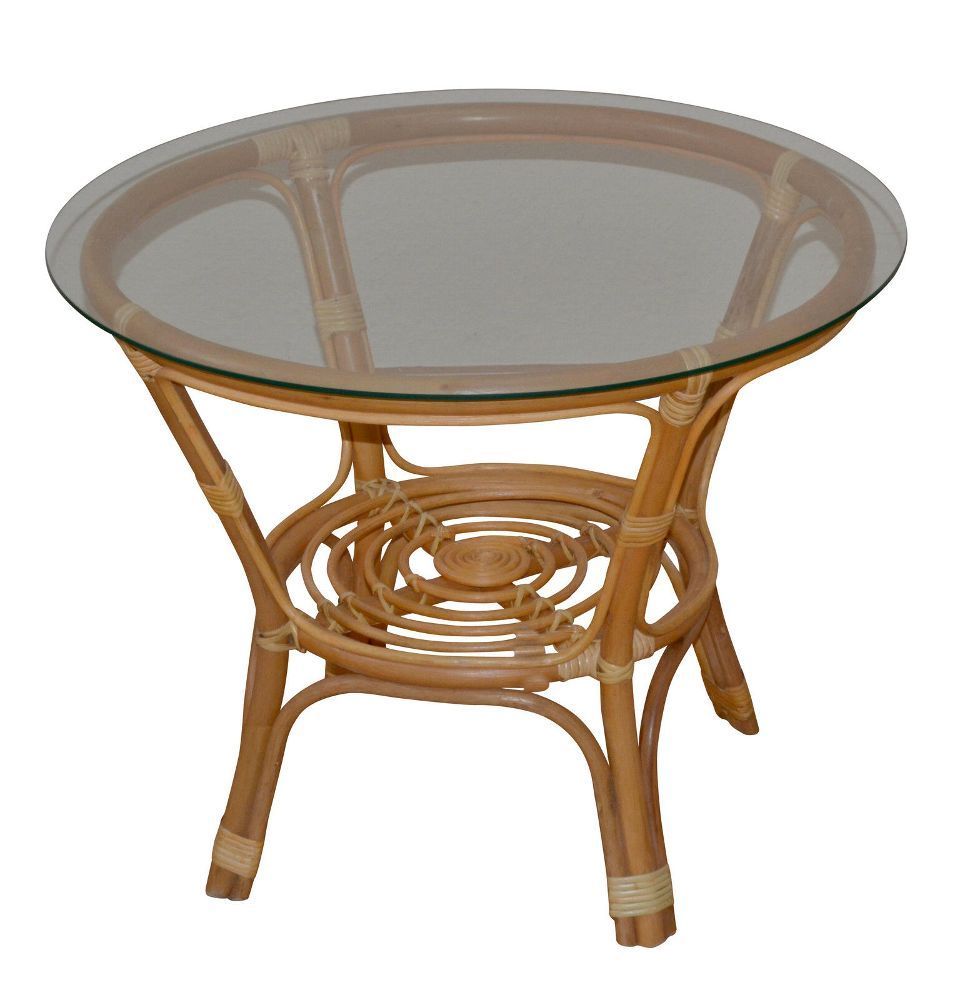 Rattantisch Honigfarben Tisch Wohnzimmertisch Sofatisch Rattan Klarglasplatte