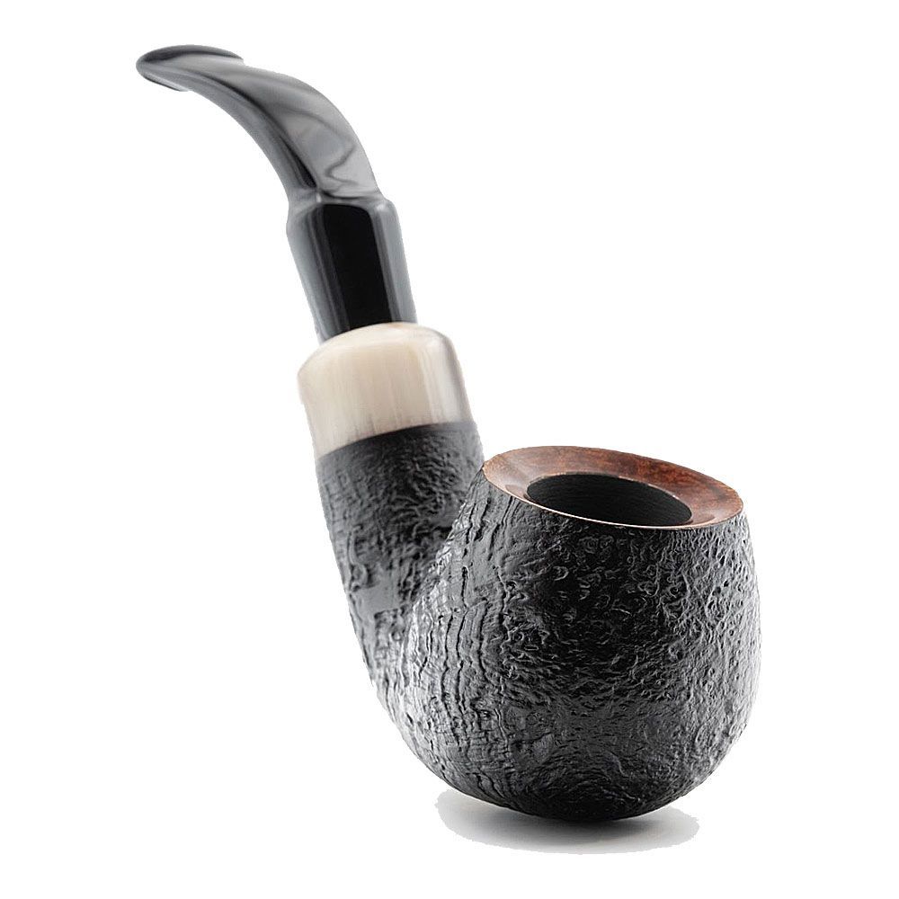 • Angelo Pfeife, schwarz glatt, leicht gebogen, mit Ring, heller Kopfrand