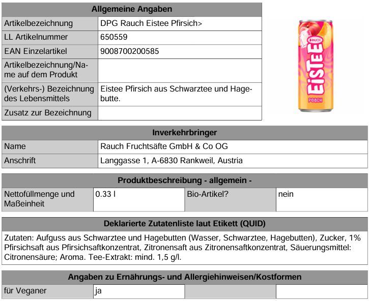 Rauch Eistee Pfirsich 12x0.33L Dose Einweg-Pfand
