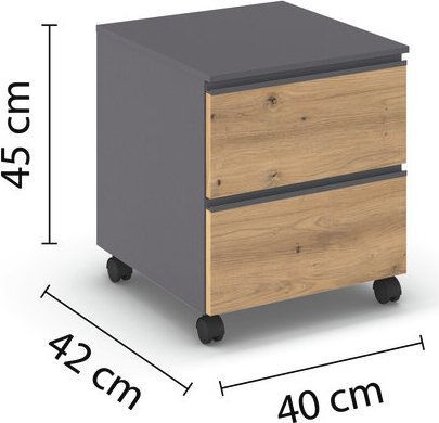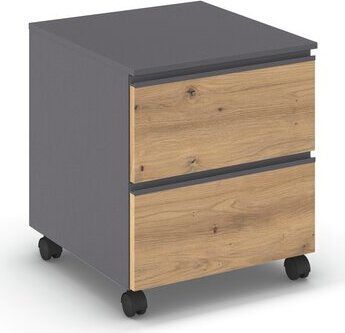 rauch Joel Rollcontainer, 2 Schubladen, Farbe Grau metallic/Eiche Artisan, Breit