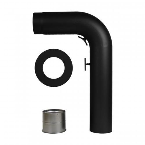 Rauchrohrset 90° gezogener Bogen 130 mm Ø Wandrosette Mauermuffe