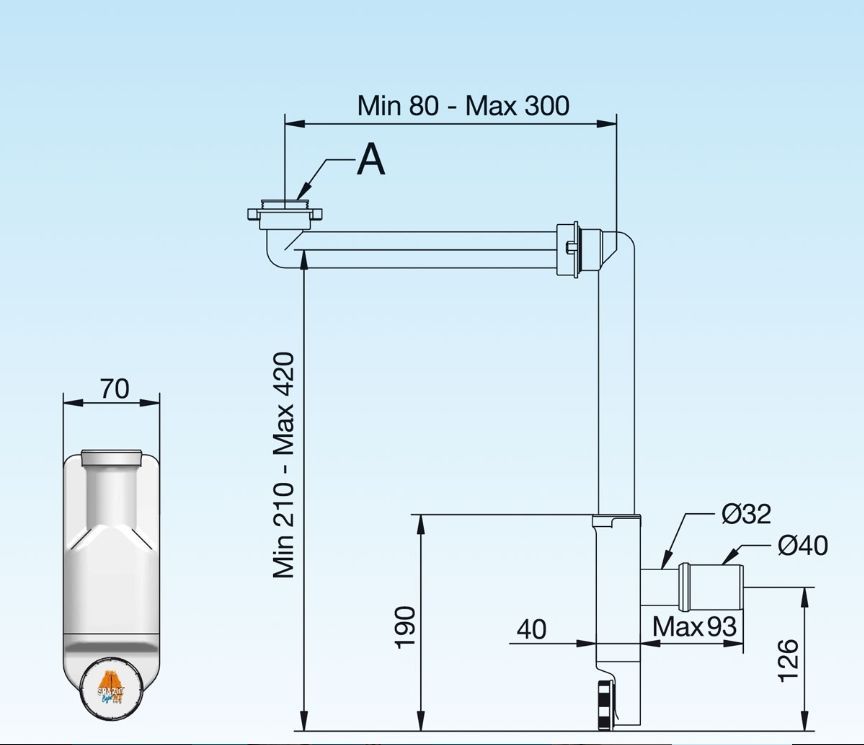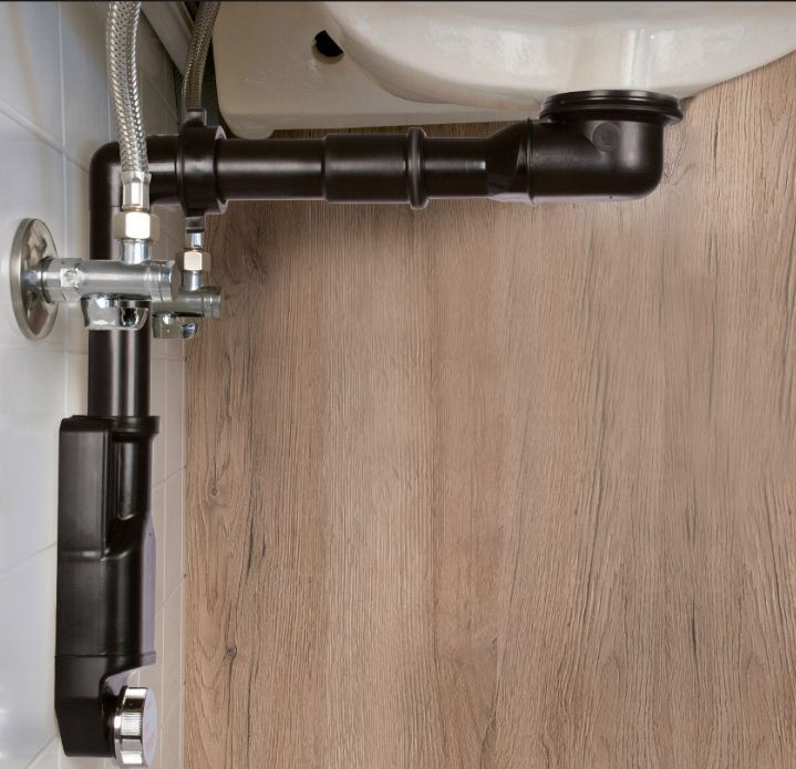 Raumspar Siphon Waschtisch Bad Becken Möbel Unterschrank Waschbecken schwarz