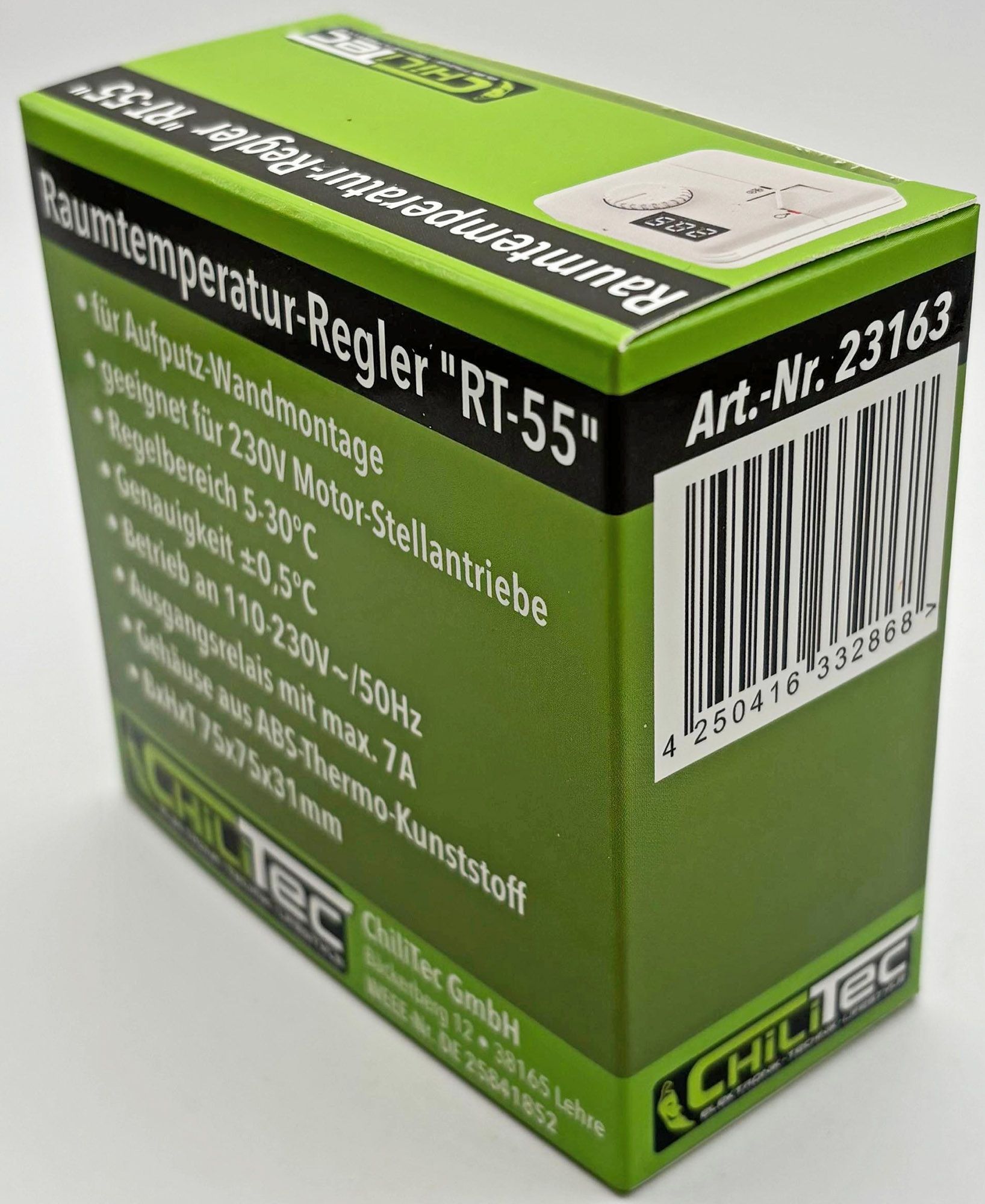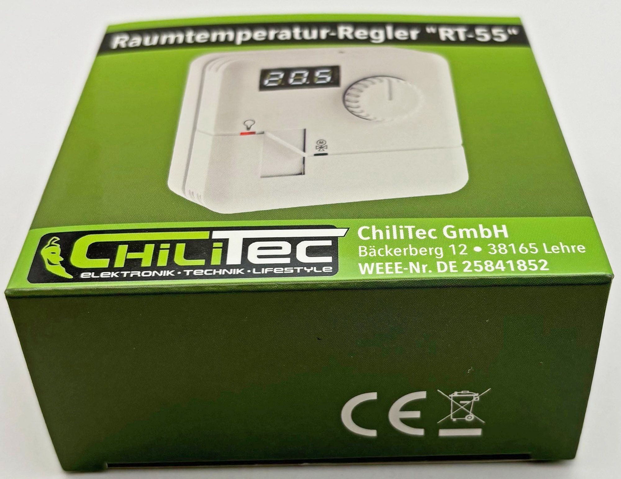 ChiliTec Raumtemperatur-Regler Thermostat "RT-55"7A, weißes LED-Display, 5-30°C, 110-230V