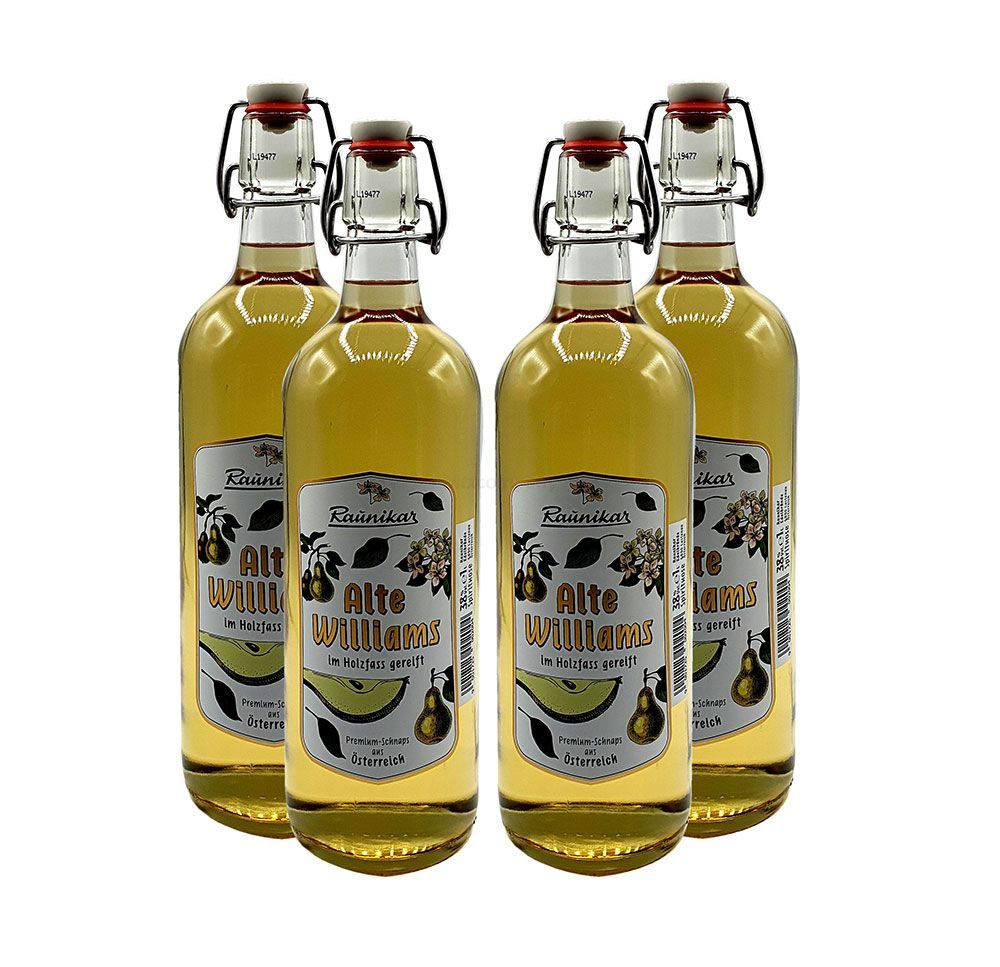 Raunikar - 4er Set Alte Williams Schnaps - 4x 1L (38% Vol)- [Enthält Sulfite]