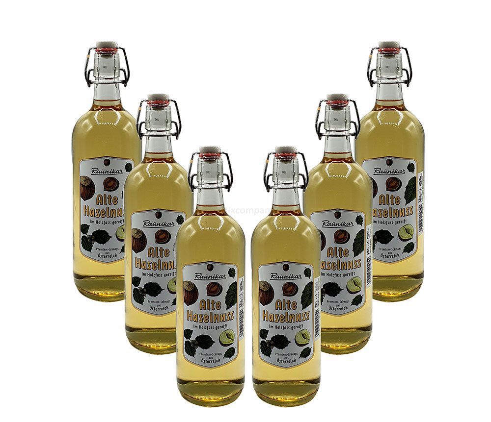 Raunikar - 6er Set Alte Haselnuss Schnaps - 6x 1L (38% Vol)- [Enthält Sulfite]
