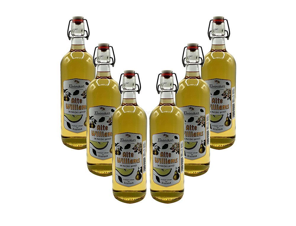 Raunikar - 6er Set Alte Williams Schnaps - 6x 1L (38% Vol)- [Enthält Sulfite]