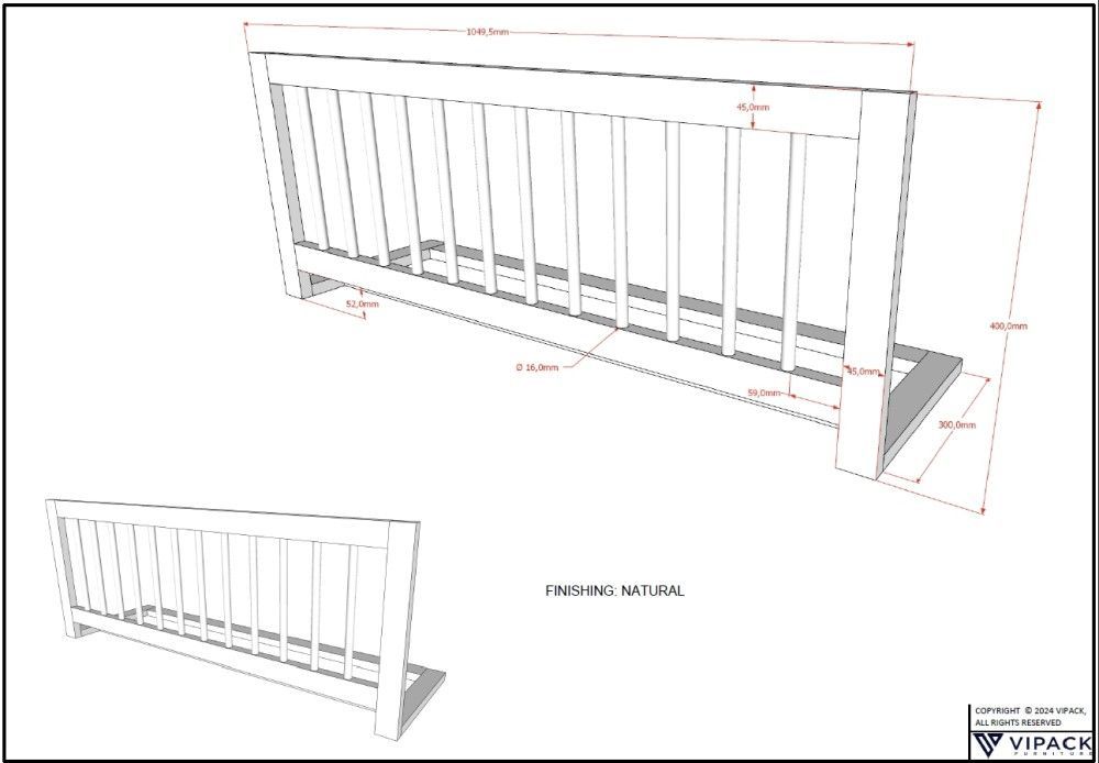 VIPACK Rausfallschutz Rausfallgitter Bettgitter für Forrest Betten Eiche massiv geölt