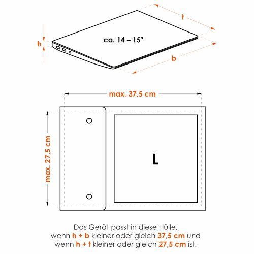 Hülle aus Filz für Notebooks und Laptops von 13 bis 14 Zoll, verschließbar mit Druckknöpfen