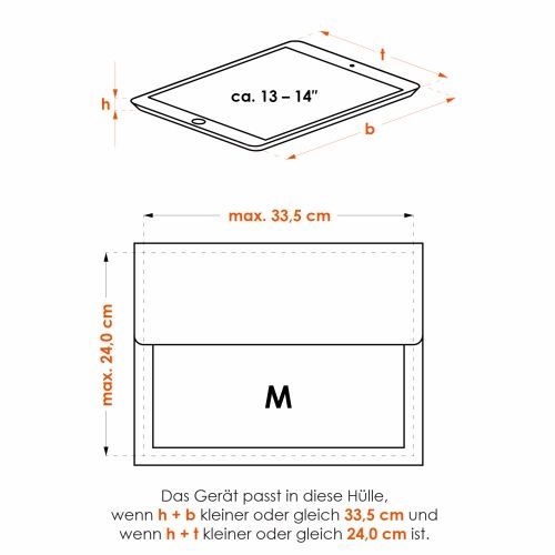 Filzsleeve für Notebooks und Laptops von 13 bis 14 Zoll, verschließbar mit Klett
