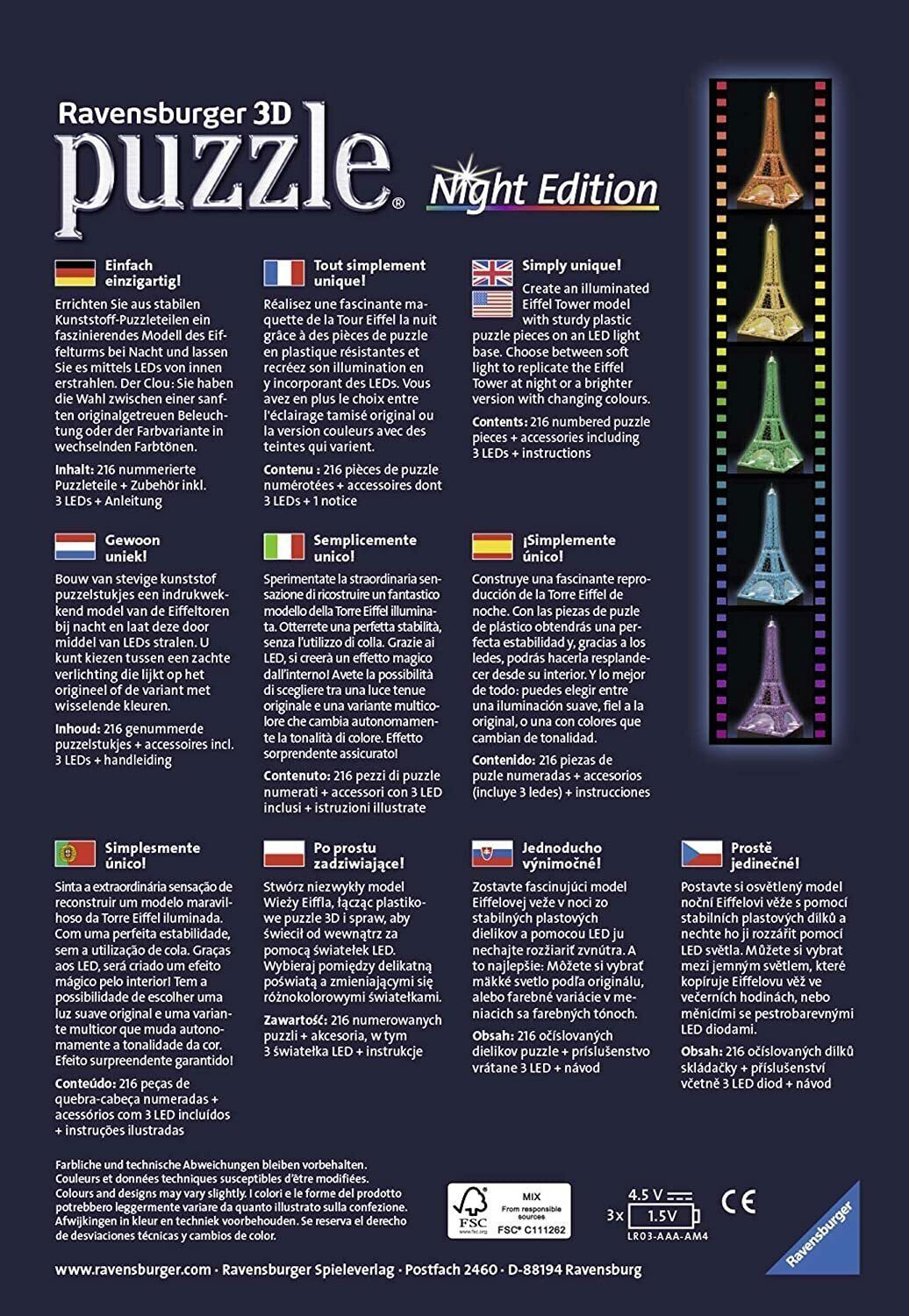 Ravensburger Ravensburger 12579 3D Puzzle Eiffelturm bei Nacht 216 Teile ab 10 Jahre