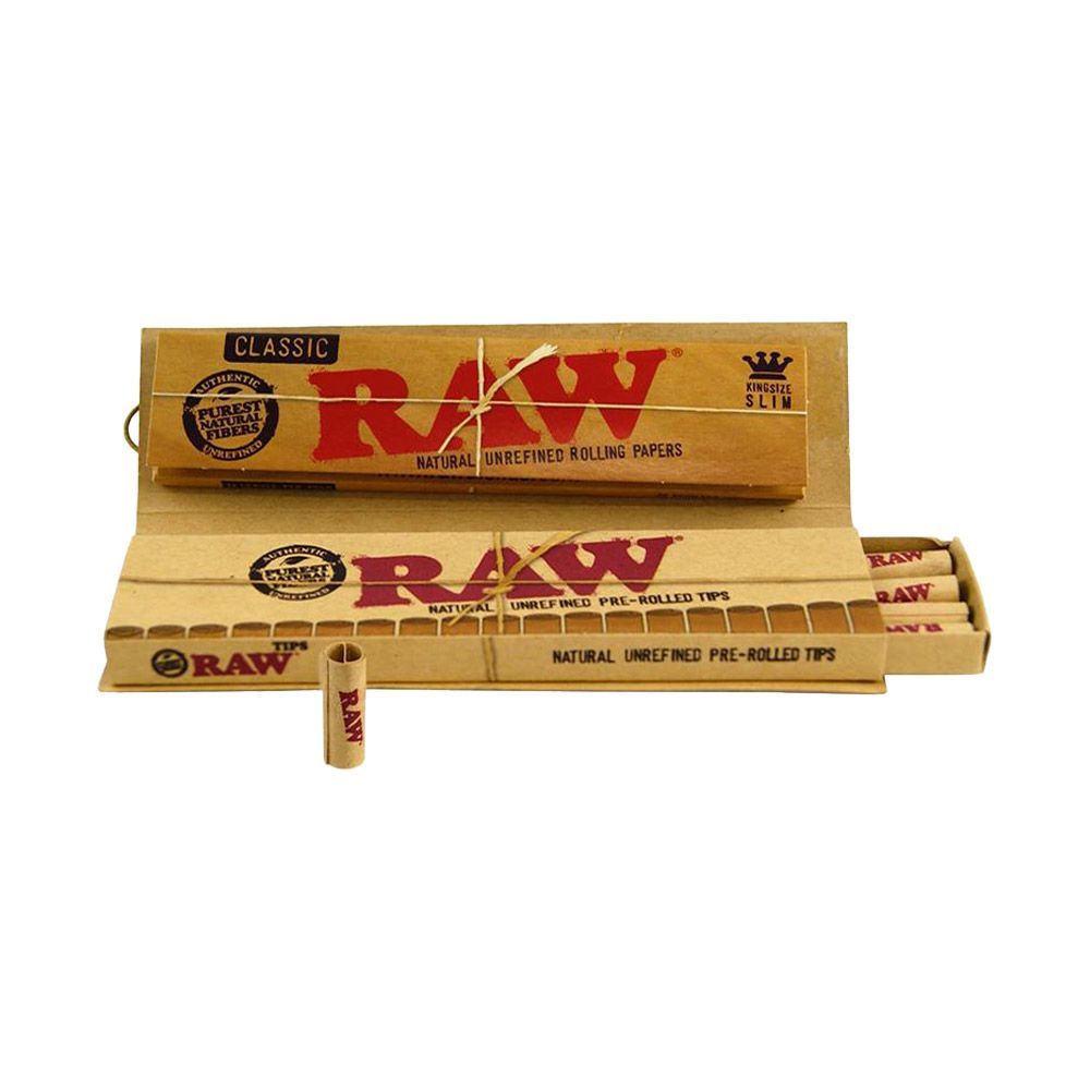 10 x RAW Connoisseur King Size Slim Papers + Pre-Rolled Tips à 32 Blatt + 24 Pre-Rolled Tips Die Blättchen bestehen aus natürlichem ungebleichtem Papier und haben eine hohe Transparenz. Die Klebefläche besteht aus natürlichem Gummi Arabicum. Ein Gummiband ist an der Rückseite befestigt um die Verpac