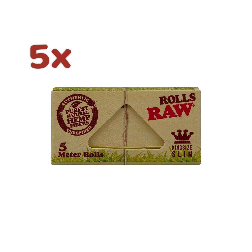 5 x RAW Organic Hemp King Size Slim Rolls 5m Die Blättchen bestehen aus natürlichem ungebleichtem Papier und haben eine hohe Transparenz. Die Klebefläche besteht aus natürlichem Gummi Arabicum. Ein Gummiband ist an der Rückseite befestigt um die Verpackung sauber zu verschließen, und vor äußeren Ein