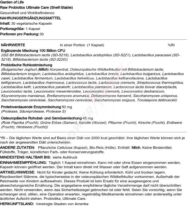 • 3 x Garden of Life Raw Probiotics Ultimate Care (Shelf-Stable) - 30 vcaps