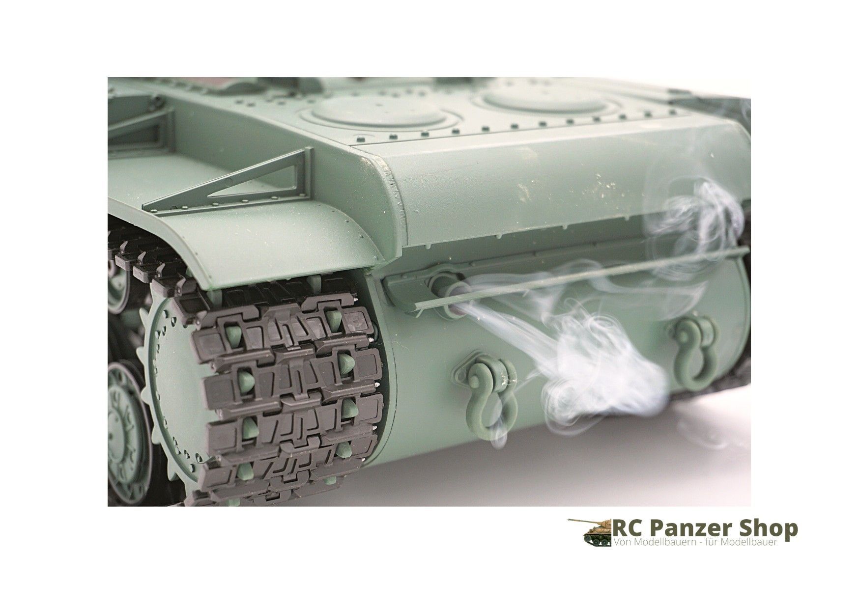 Kein Rauch Kein Akku plus Ladegerät lässt sich nichts öffnen Als Panzersammler habe ich für das Geld den Tiger und Bul, Dock besser bekommen. Würde nicht wieder kaufen.