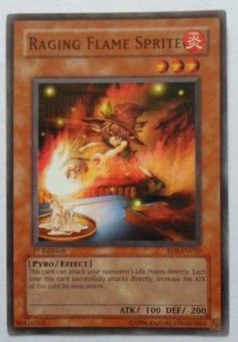 Raging flame sprite, RDS-EN020, 1. Auflage, Common, nearmint, Original Konami. Bitte auch in meine anderen Auktionen reinschauen, ist vielleicht das ein oder andere Interessante mit dabei und es können Versandkosten gespart werden. Versand: Artikel wird gut und sicher verpackt (Karton, Luftpolsterum