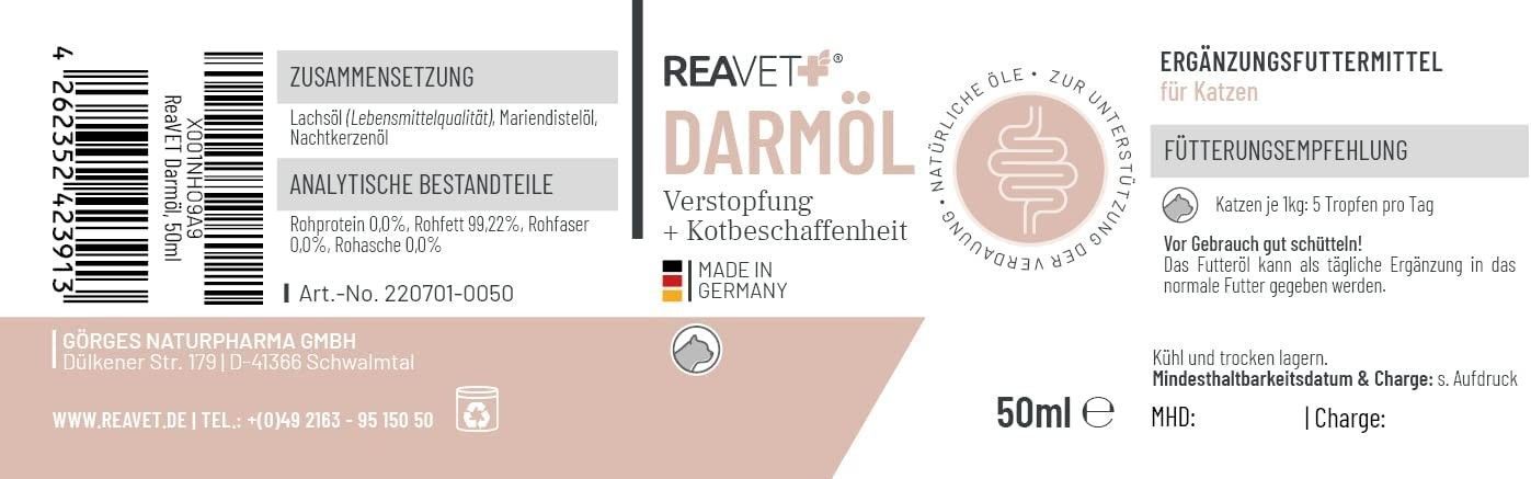 REAVET Darmöl für Katzen 50ml - Natürliche Unterstützung der Verdauung
