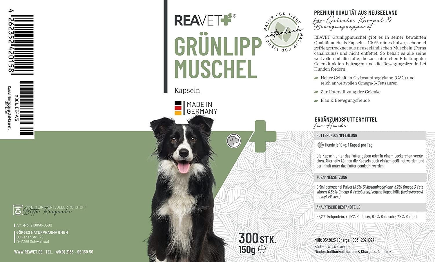 ReaVET Grünlippmuschel Kapseln für Gelenke, Knorpelaufbau, Bewegungsapparat