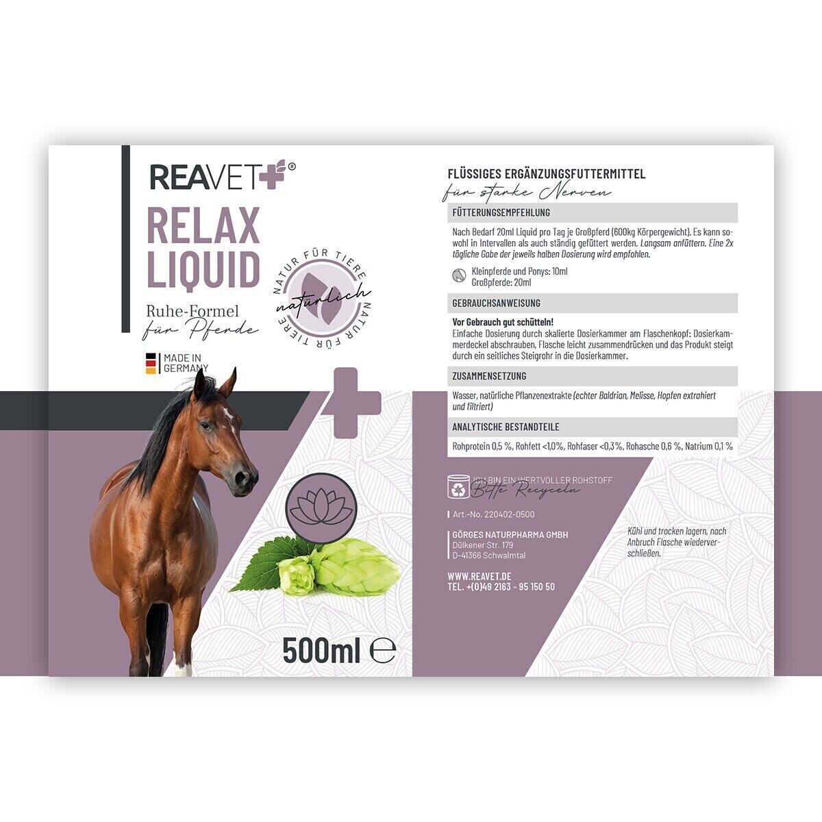 REAVET Relax Liquid für Pferde 500ml, Beruhigungsmittel Pferd, Stress & Angst