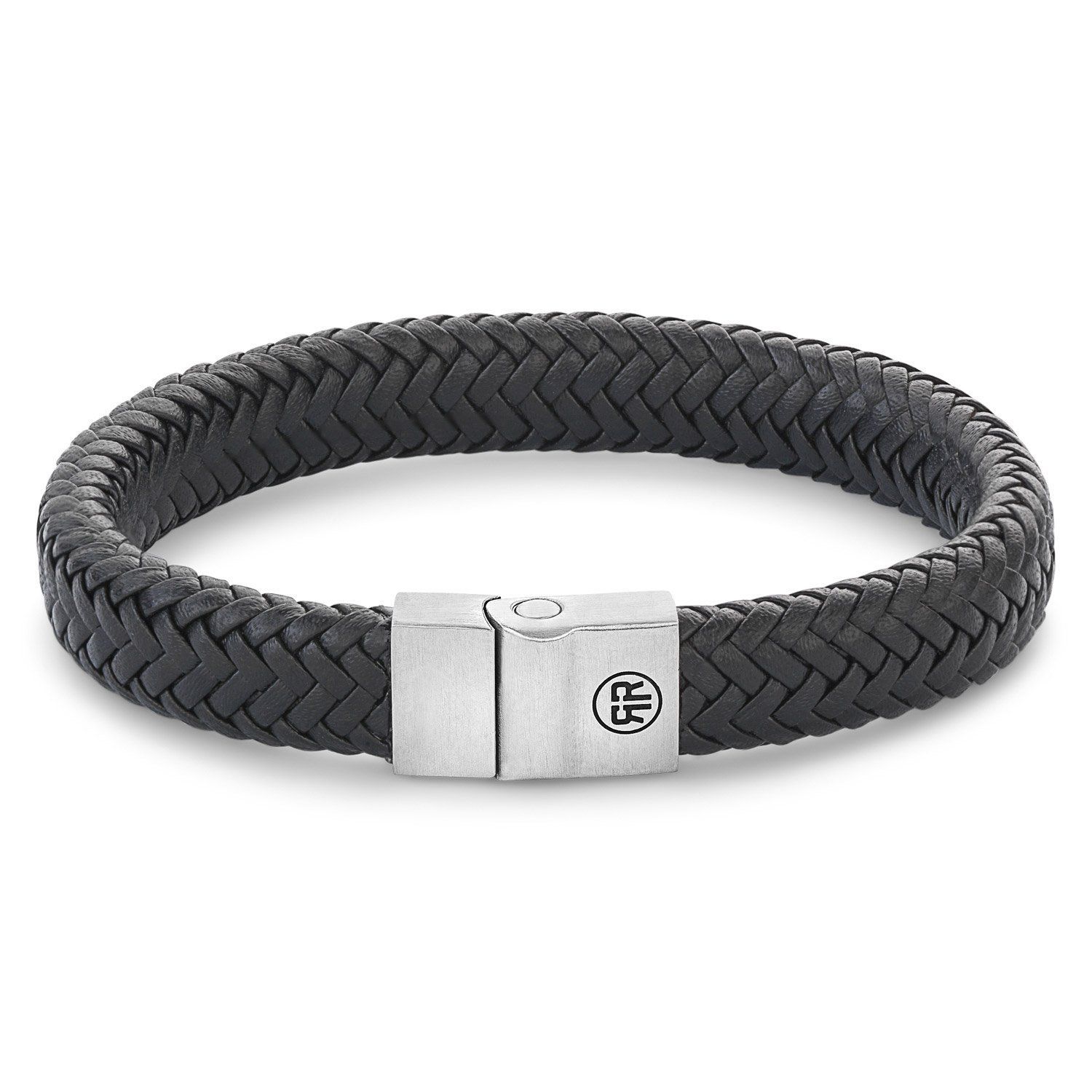 Rebel & Rose Schmuck Herren-Lederarmband Schwarz Full Metal Herringbone Black RR-M00