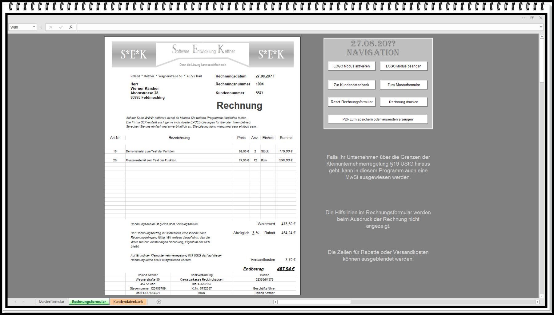 Rechnungsprogramm Easy Faktura Kleinunternehmerregelung § 19 UStG Kleinunternehmer
