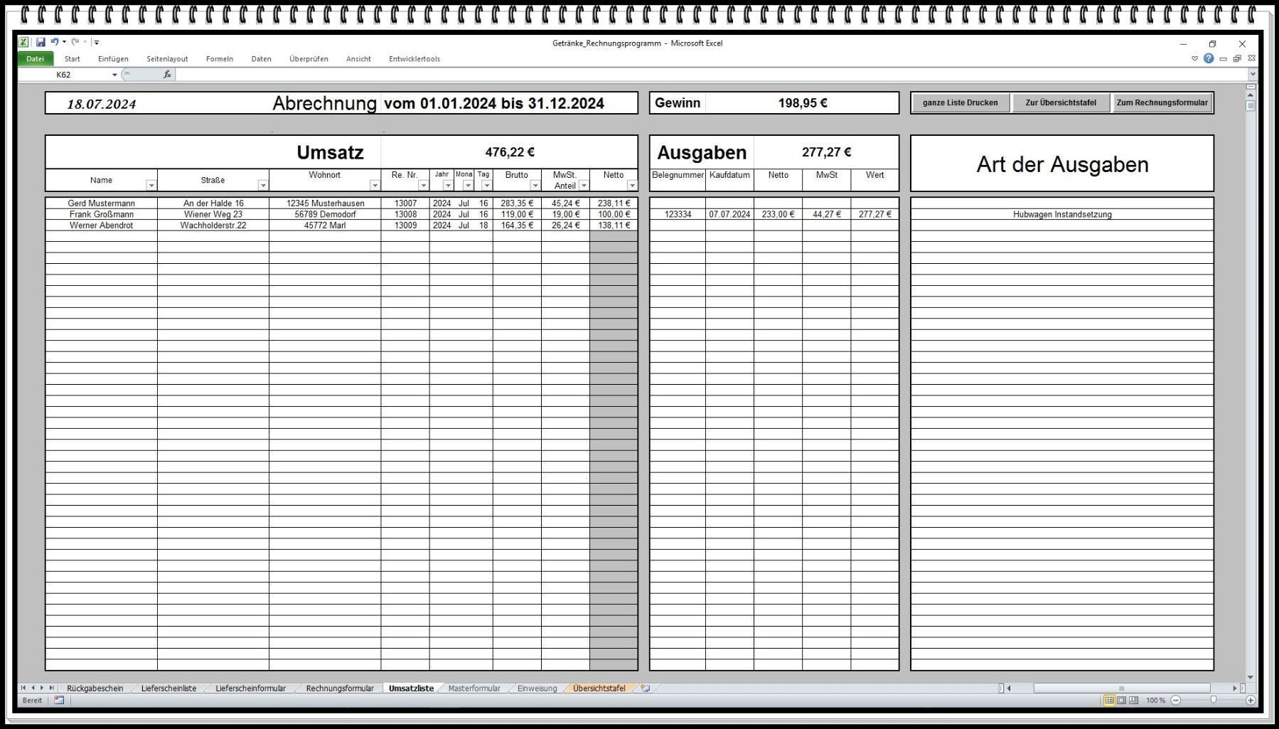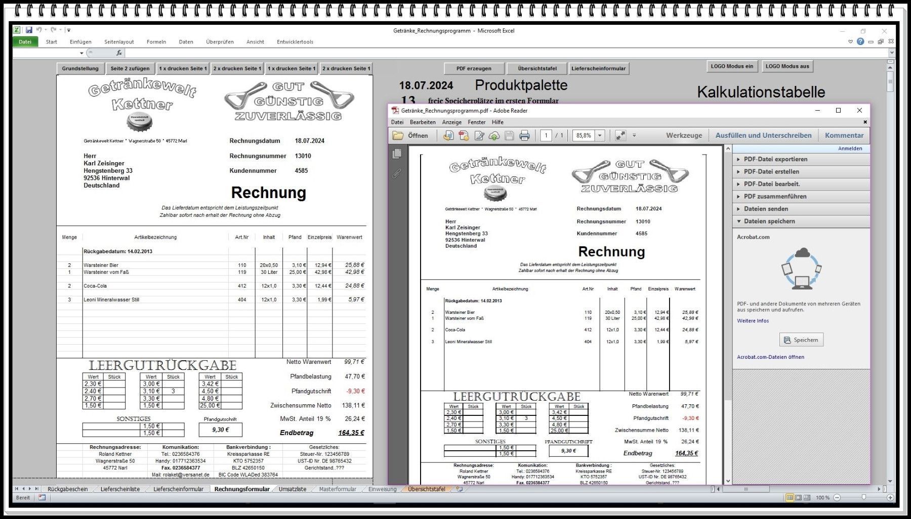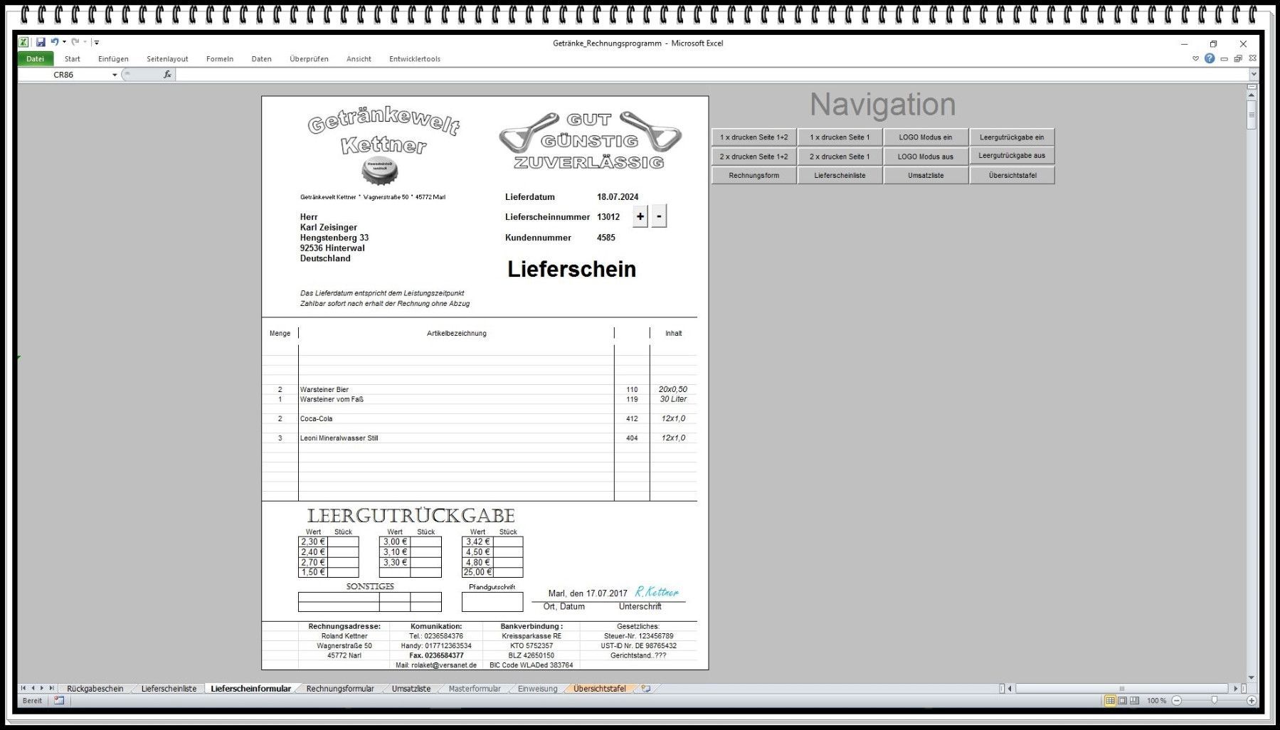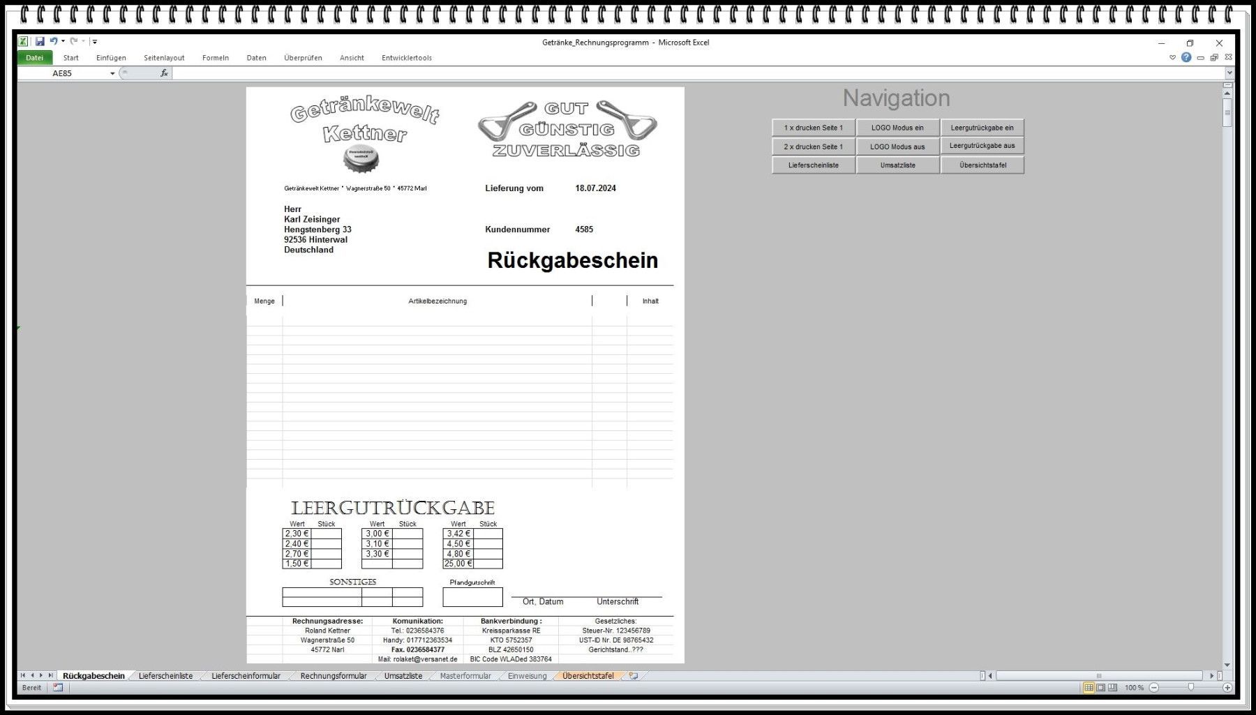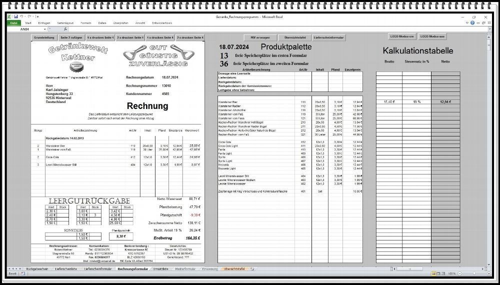 Rechnungsprogramm Rechnungssoftware Getränkehandel Getränkemarkt mit Leergutschein