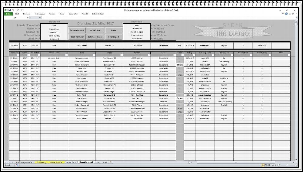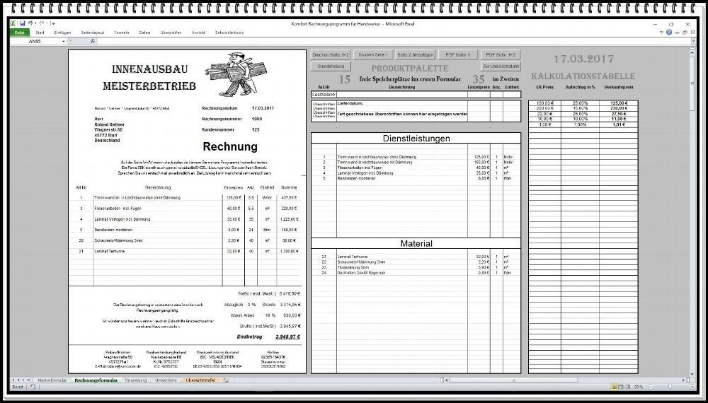Rechnungssoftware für alle Brangen wie Handwerker, Dienstleister Fliesenleger u.s.w.