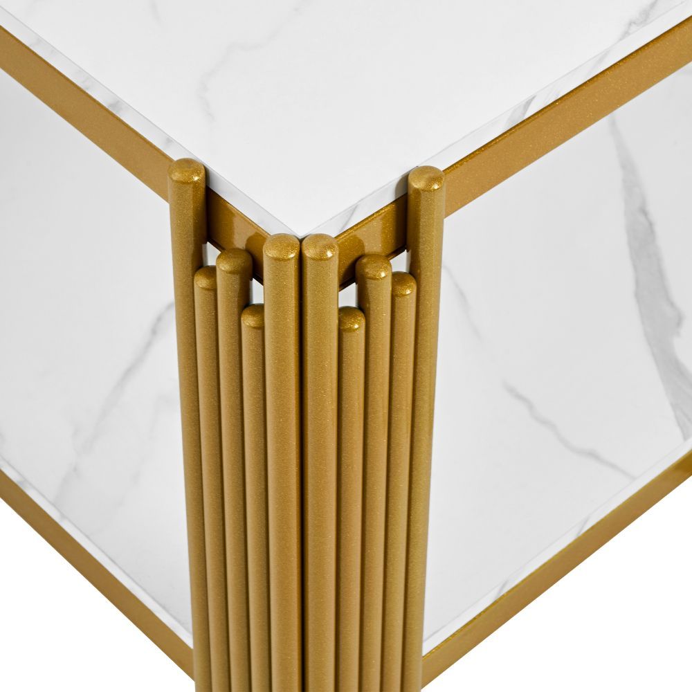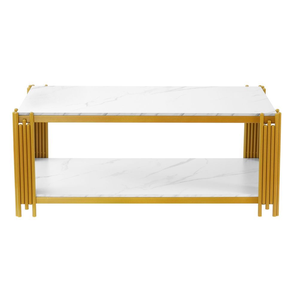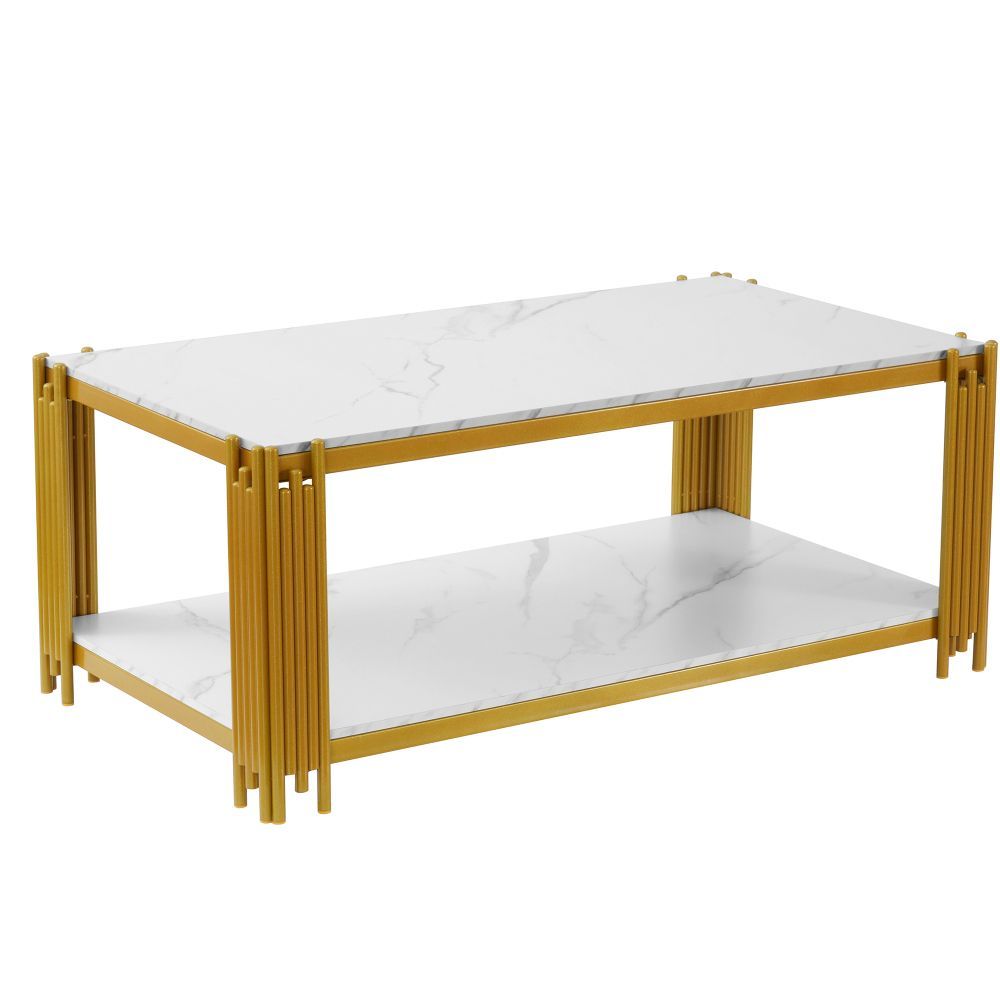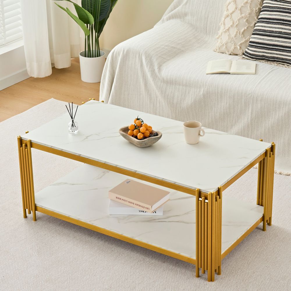 Rechteckiger Couchtisch mit Metallbeinen Marmoroptik modern 114x63,5x46,3 cm