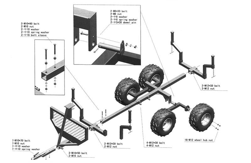 Réckewagen Forsttrailer Holzanhänger Kugelkopfkupplung 1000kg verzinkt Quad