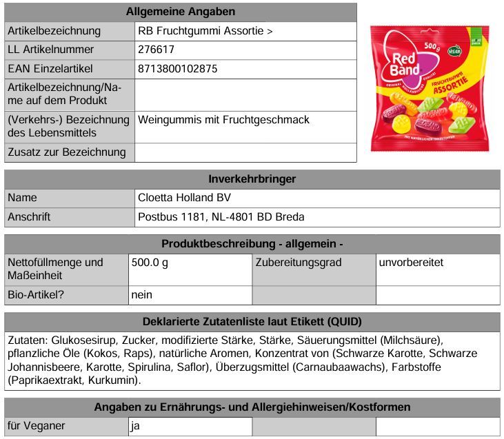 • Red Band Fruchtgummi Assortie Family Beutel 500g - vegan