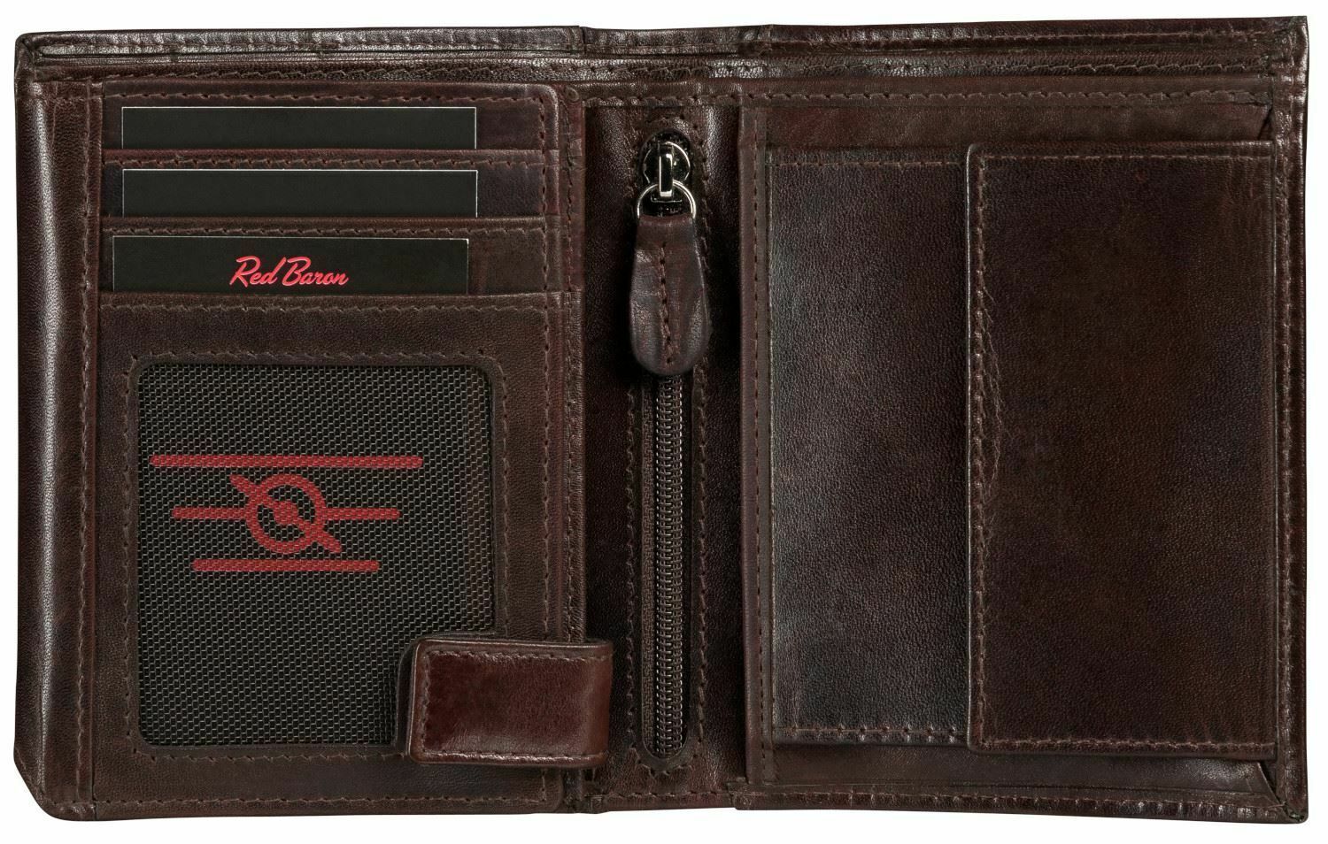 Red Baron Geldbörse Herren Echt Leder Hochformat Rotbraun RB-WT-002-06