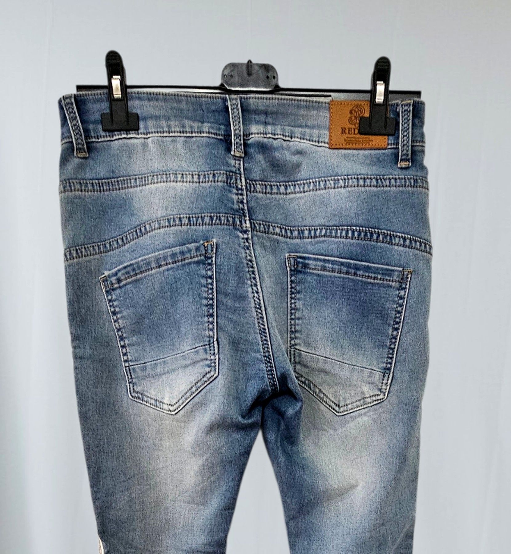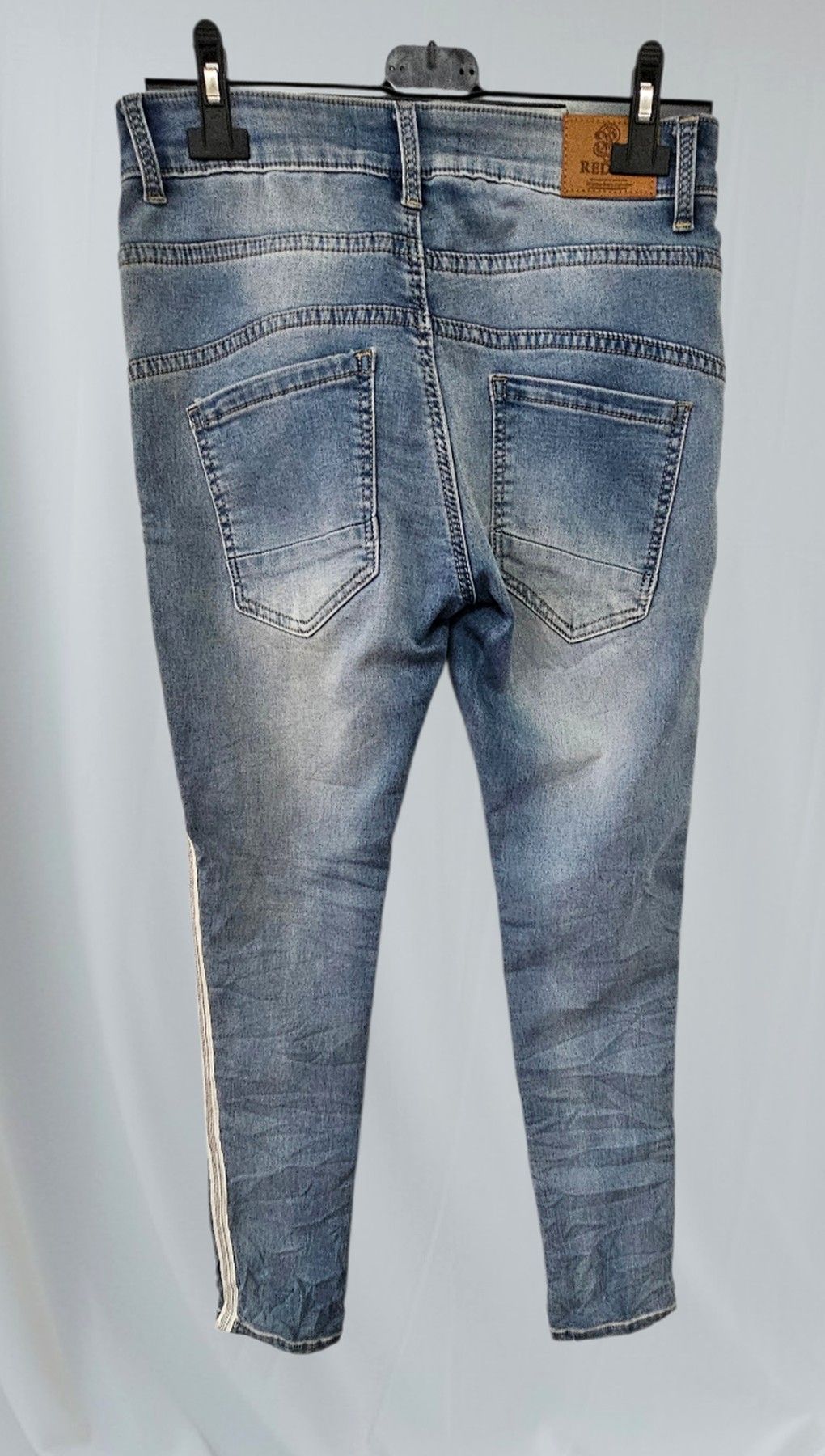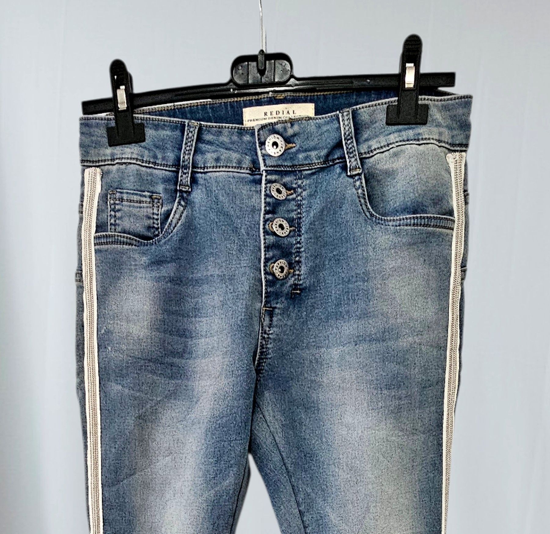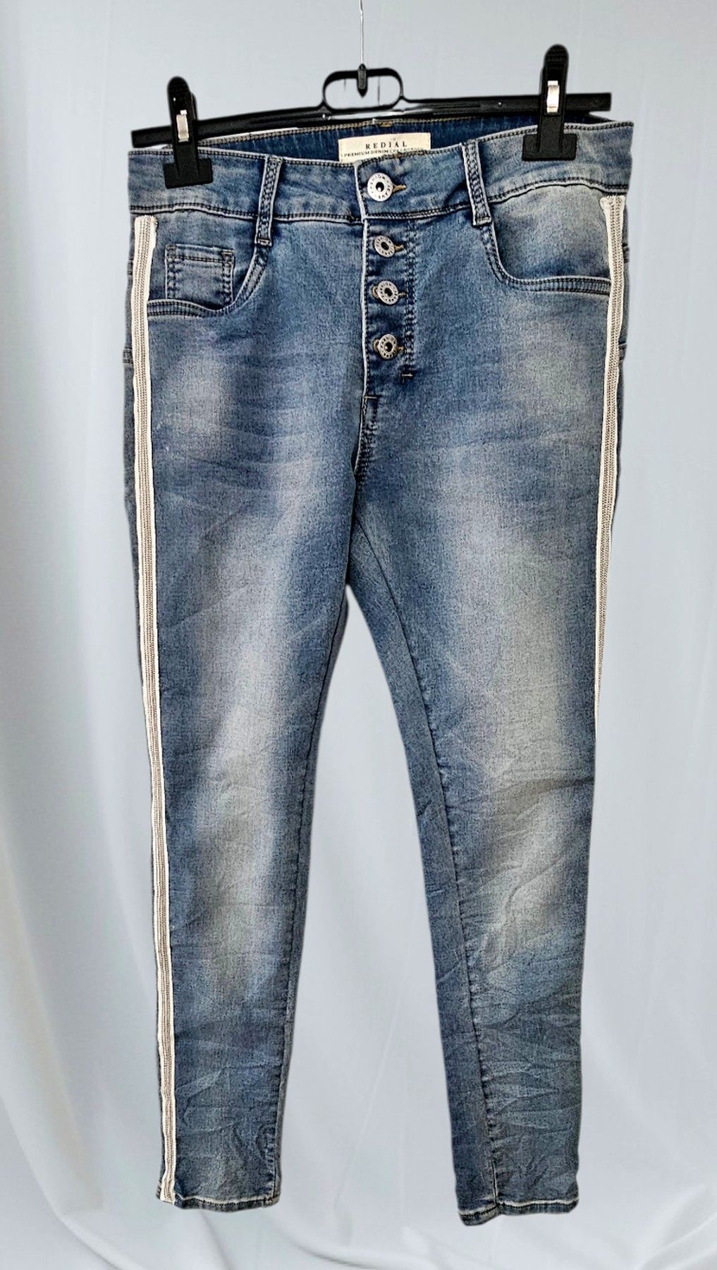 Redial Damen Jeans Röhre Stretch Denim Waschung Nieten Knöpfe Taschen Blau in S