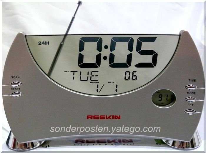 Reekin Reekin Designer Glas Uhr Wecker Radiowecker Uhrenwecker FM Scan Silber XXL LCD