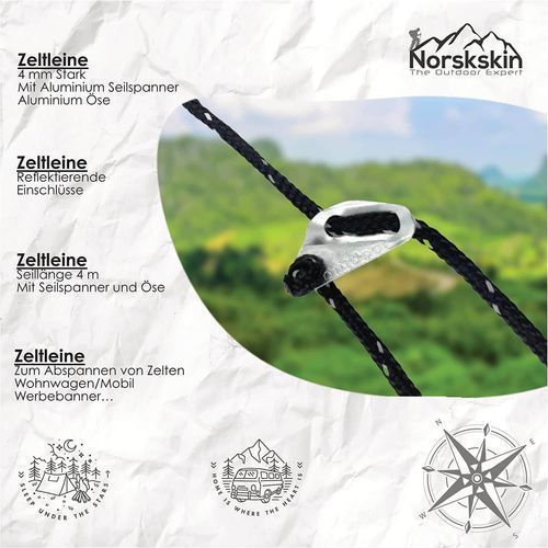 Reflektierende Zeltleinen mit Dreiloch Alu Spanner Abspannleine