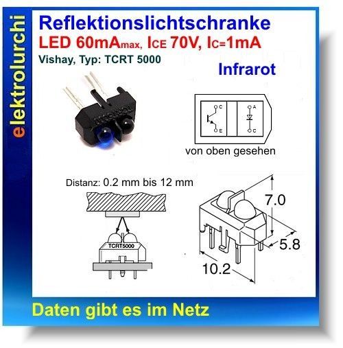 Reflektionslichtschranke Infrarot Vishay Typ: TCRT5000, Sendediode + Empfänger, 2St.