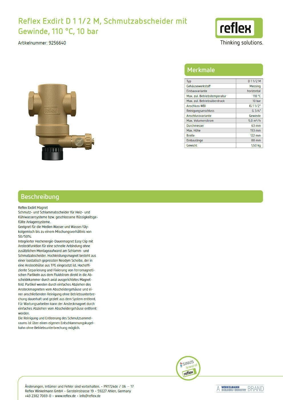 Reflex Schlammabscheider Exdirt D 1 1/2 M mit Exferro Easyclip horizontal 10 bar