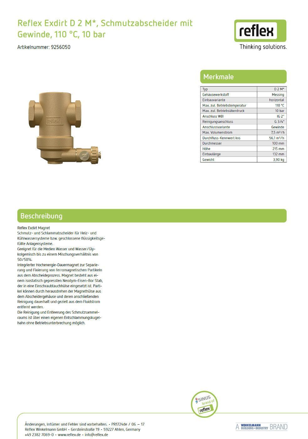 Reflex Schmutz- Schlammabscheiderabscheider Magnet Exdirt D 2" 10 bar