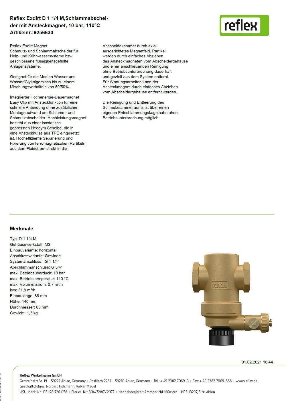 Reflex Schmutzabscheider Schlammabscheider exdirt D 1 1/4" M horizontal 10 bar