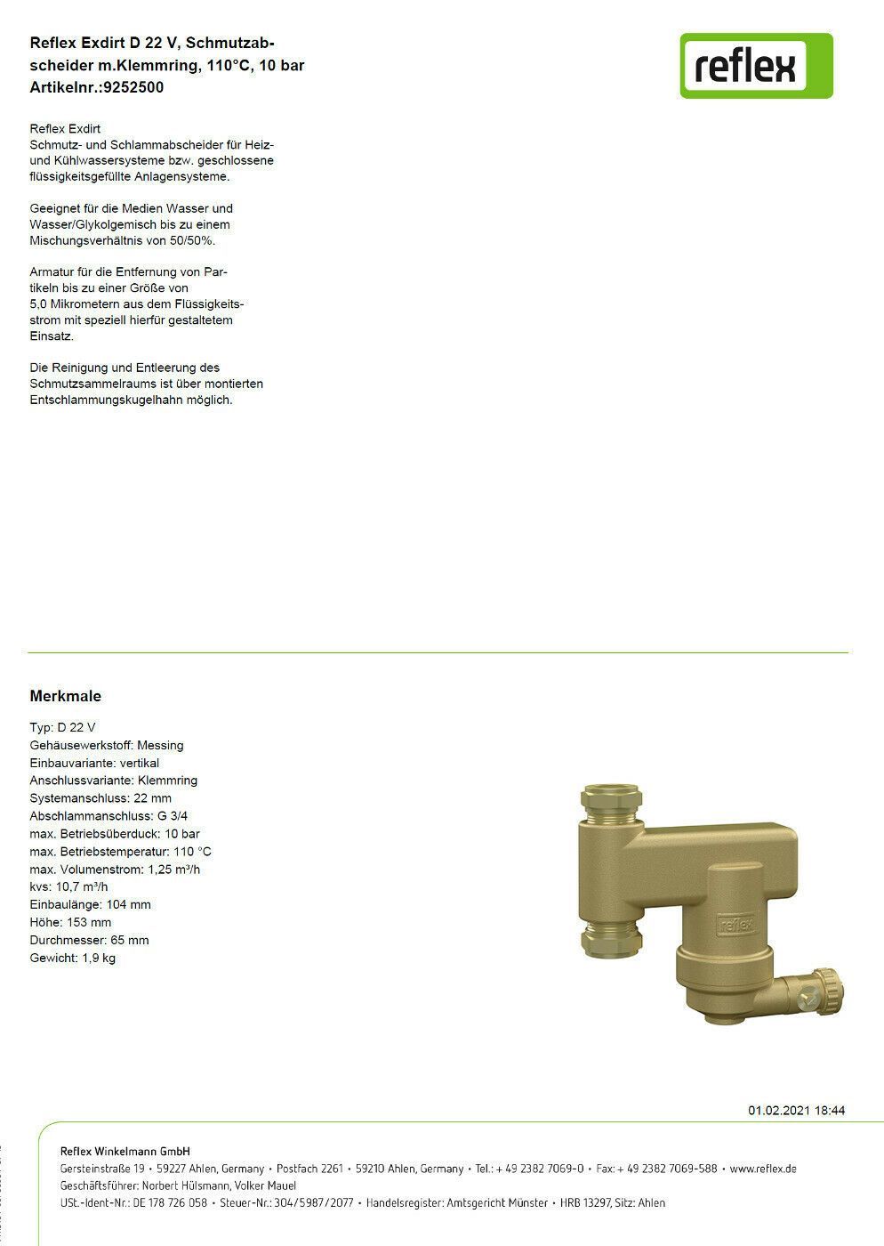 Reflex Schmutzabscheider Schlammabscheider exdirt D 22 V vertikal Messing 10 bar